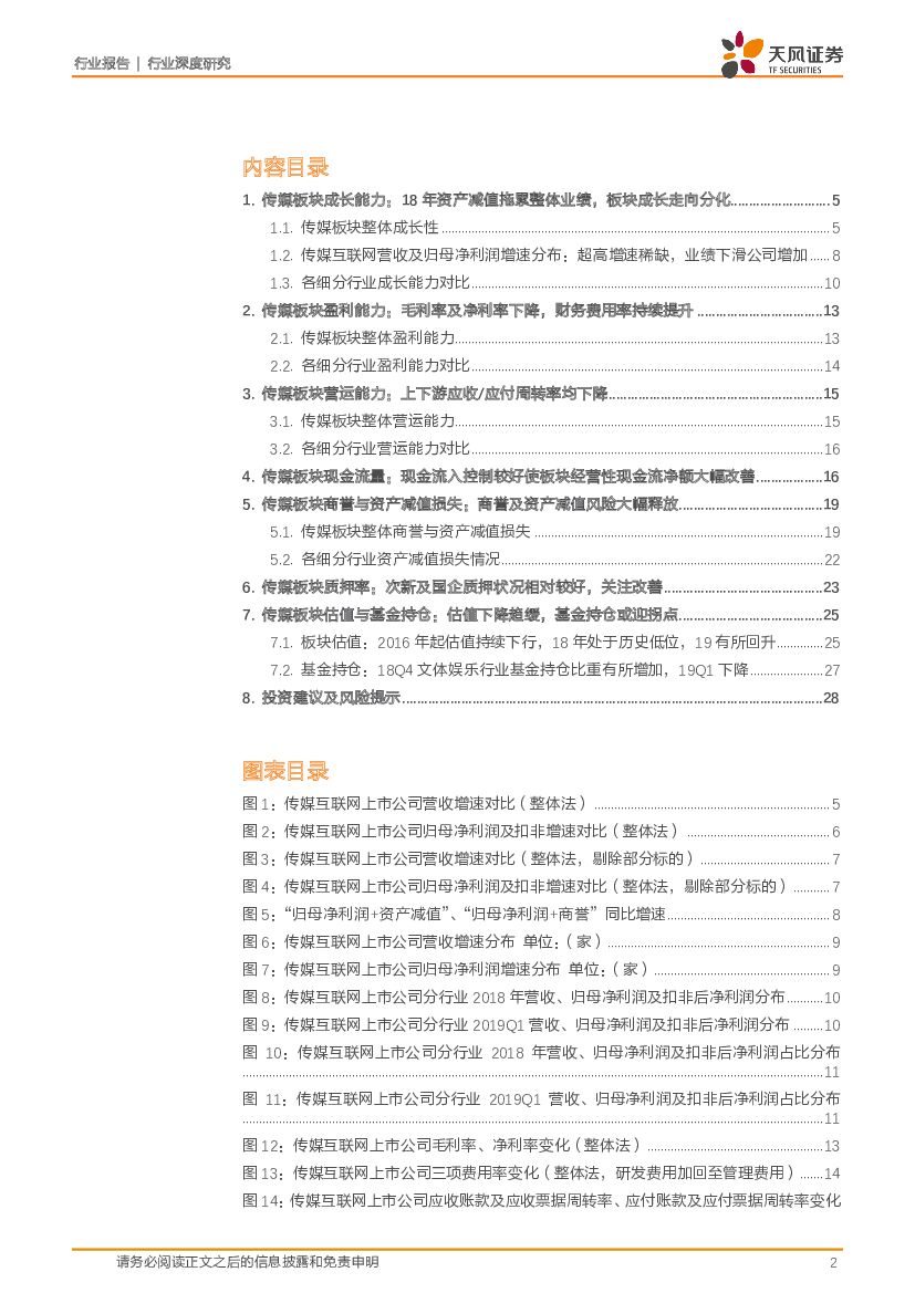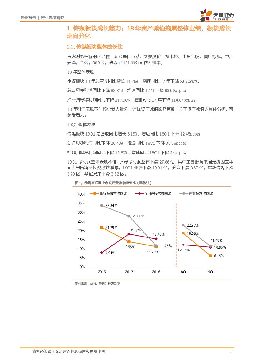 天风证券:传媒行业18年&19Q1财报总结:资产减值触业绩低谷,至暗过后关注率先改善龙头.pdf
