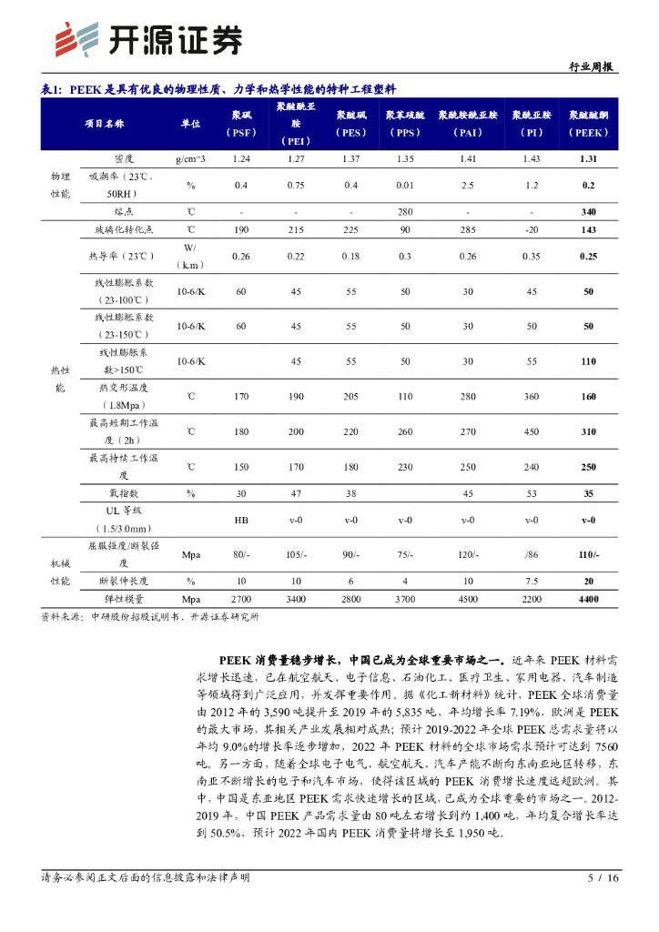开源证券:新材料行业周报:特种工程塑料系列一:聚醚醚酮性能优异,国产工业化生产待加速.pdf