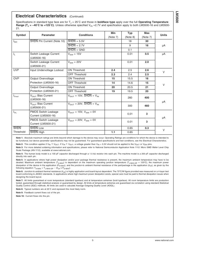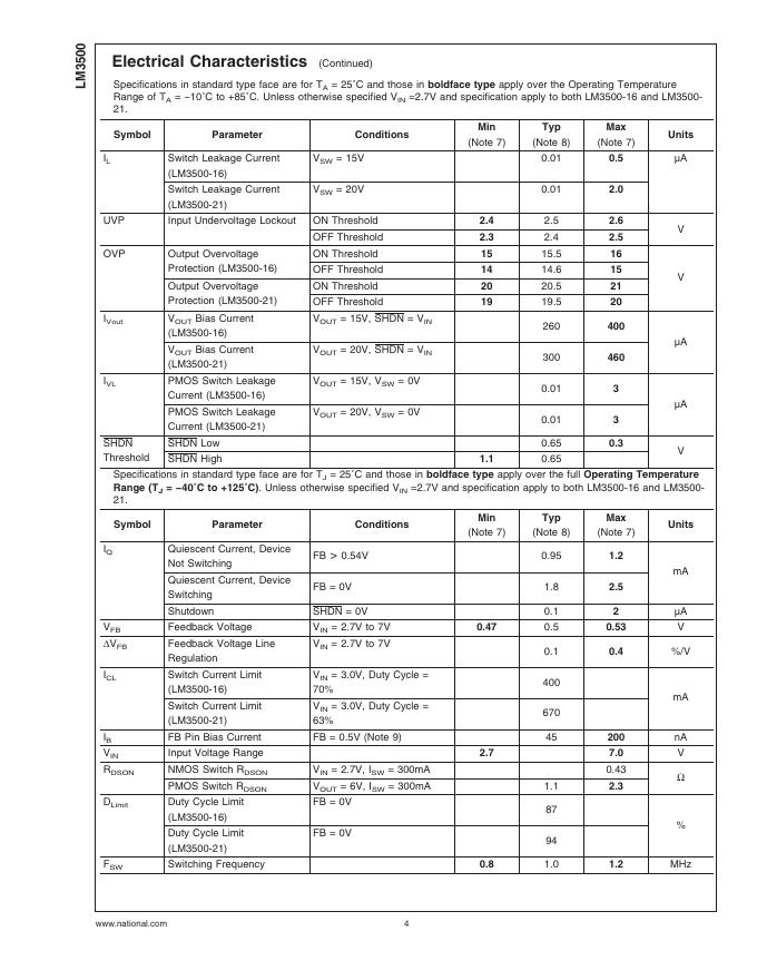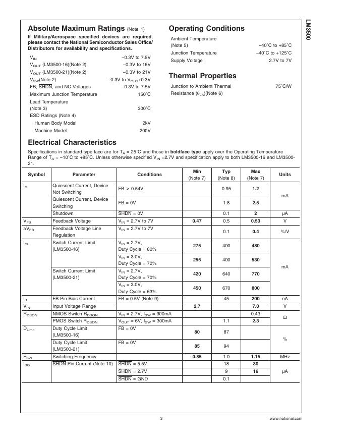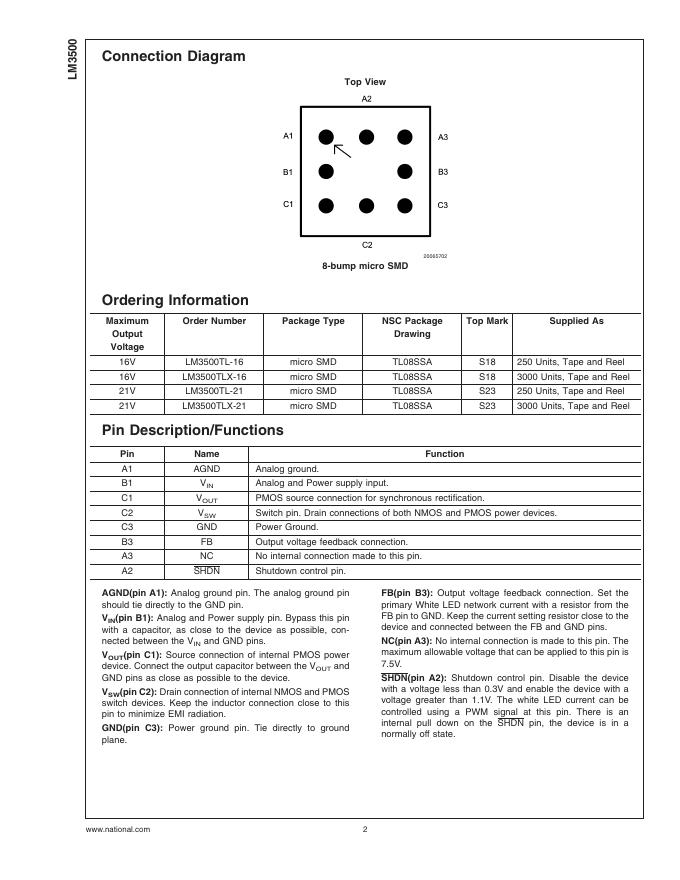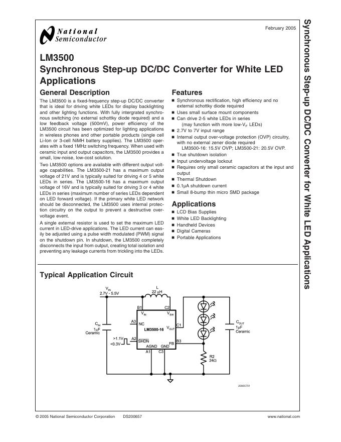 NATIONAL SEMICONDUCTOR LM3500 Synchronous Step-up DC/DC Converter for White LED Applications 数据手册.pdf