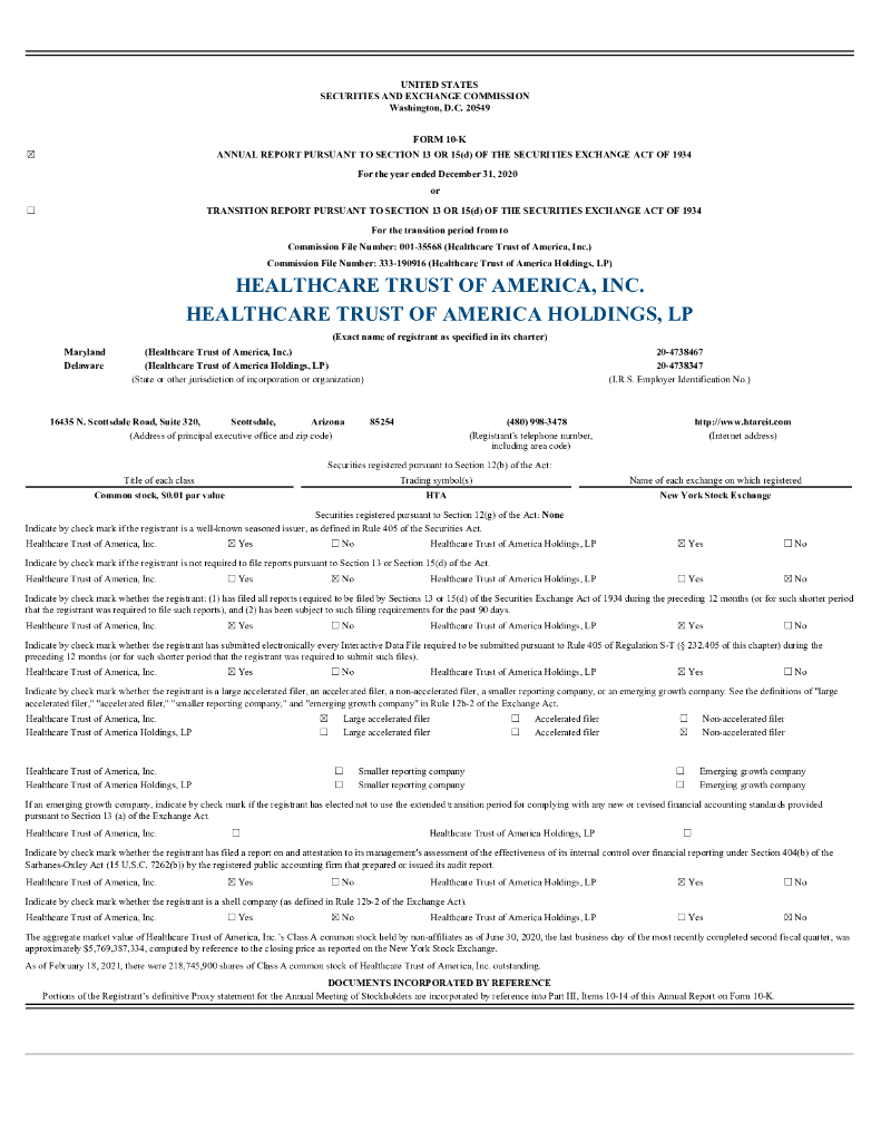 Healthcare Trust of America inc(HTA)2020财年年度报告(英文版).pdf