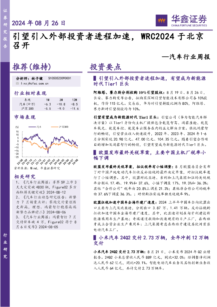 华鑫证券:汽车行业周报:引望引入外部投资者进程加速,WRC2024于北京召开.pdf