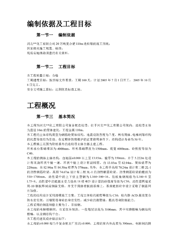 河北某公司20万吨复合肥110m造粒塔工程施工.doc