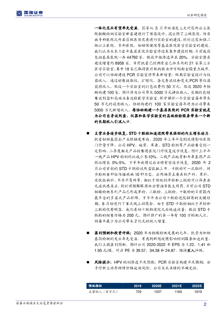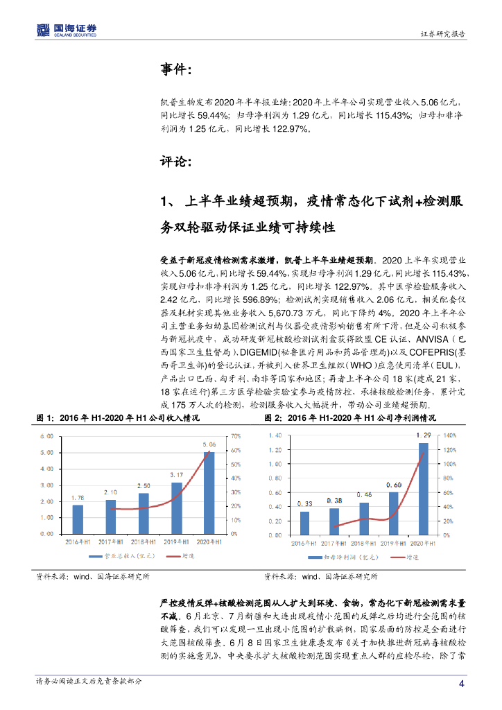 国海证券:凯普生物(300639)-2020年半年报业绩点评:半年报业绩超预期,凯普检测服务一体化全产业链布局价值凸显.pdf