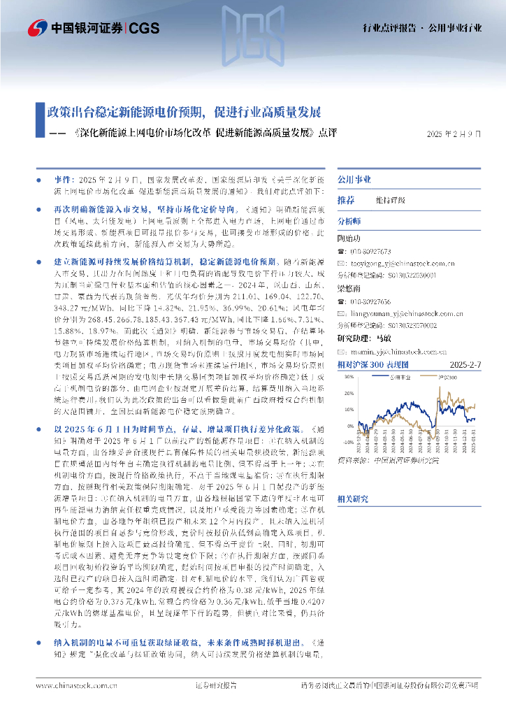 中国银河:公用事业行业《深化新能源上网电价市场化改革促进新能源高质量发展》点评:政策出台稳定新能源电价预期,促进行业高质量发展.pdf