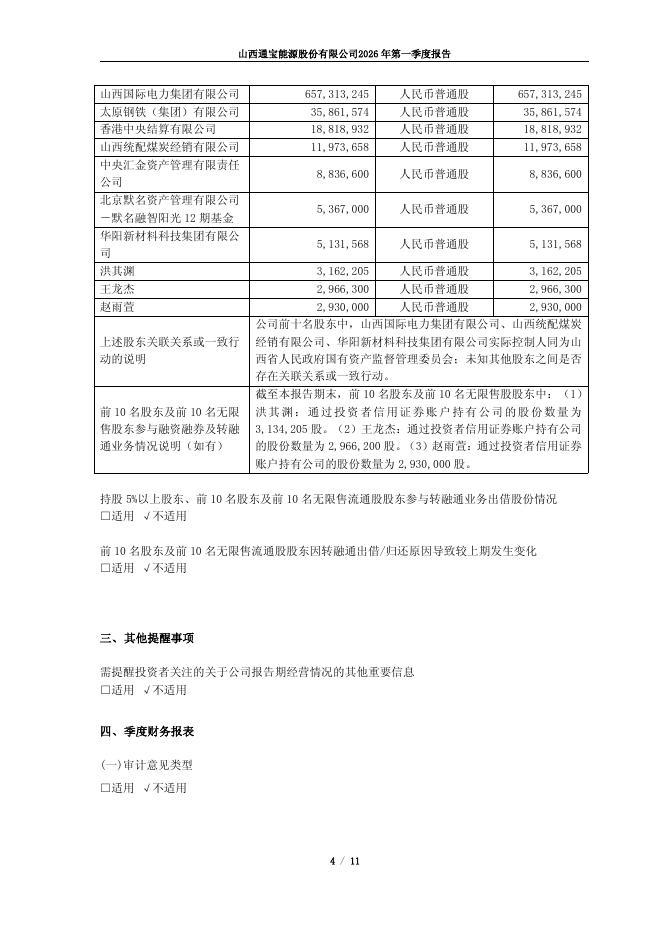 600780-通宝能源:山西通宝能源股份有限公司2026年第一季度报告.pdf