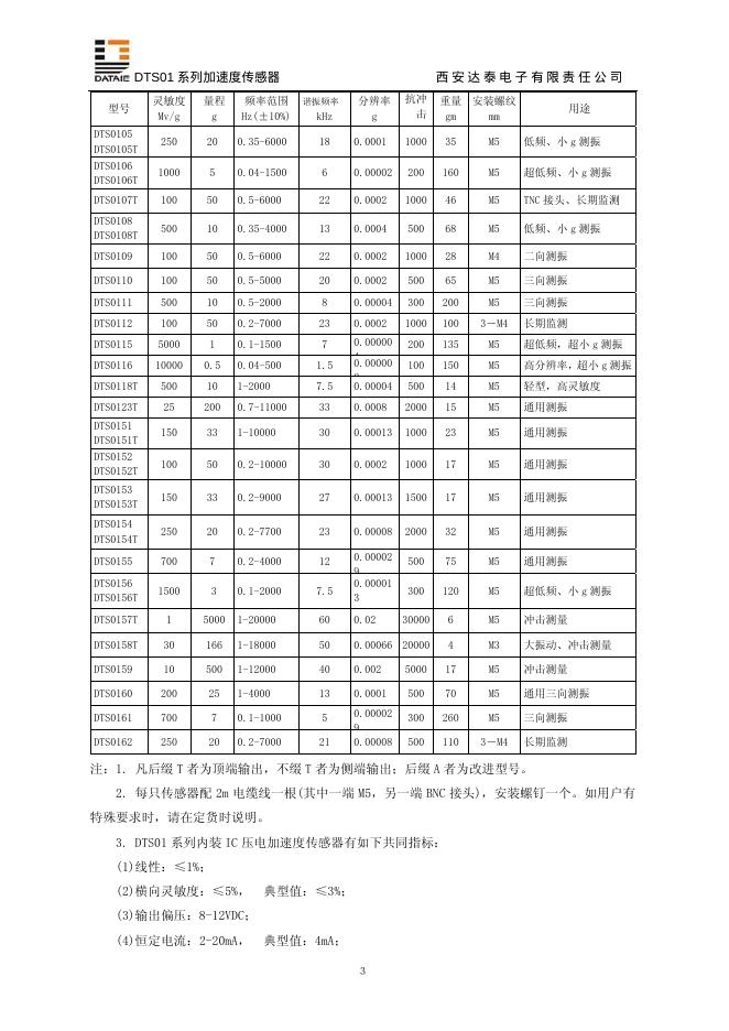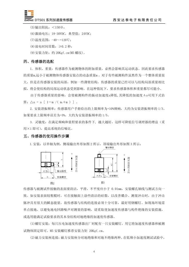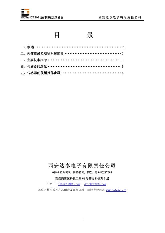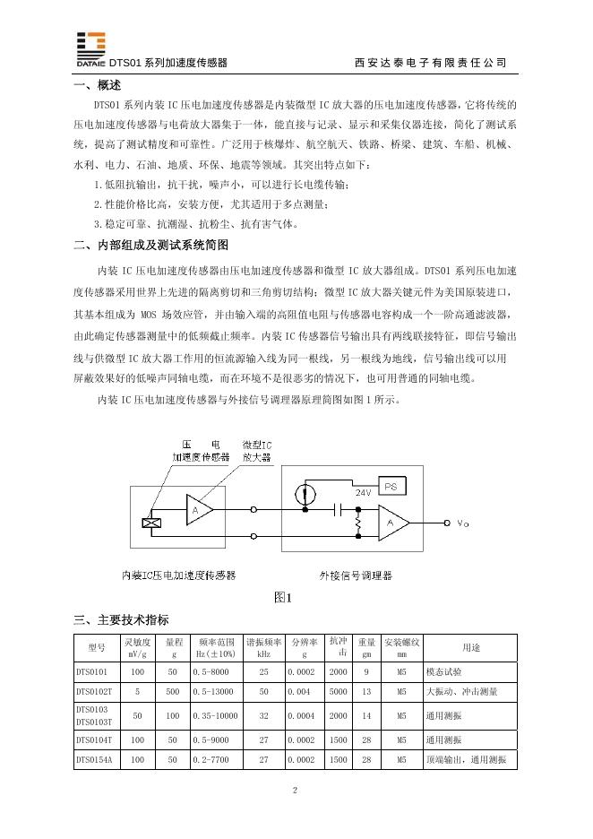 西安大泰电子有限责任公司 DTS01系列内装IC压电加速度传感器 使用手册.pdf