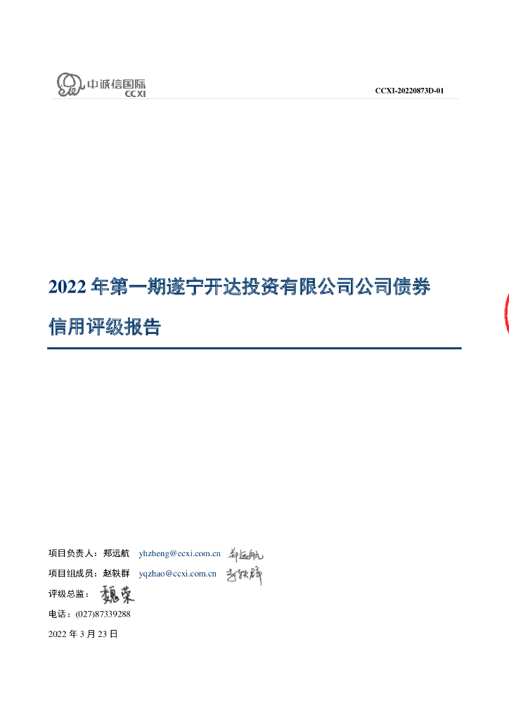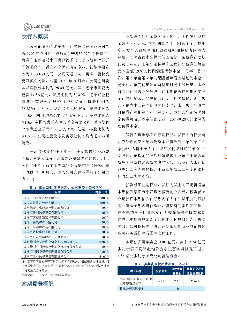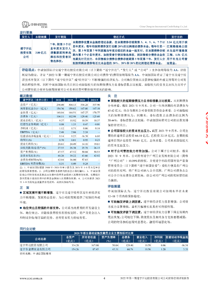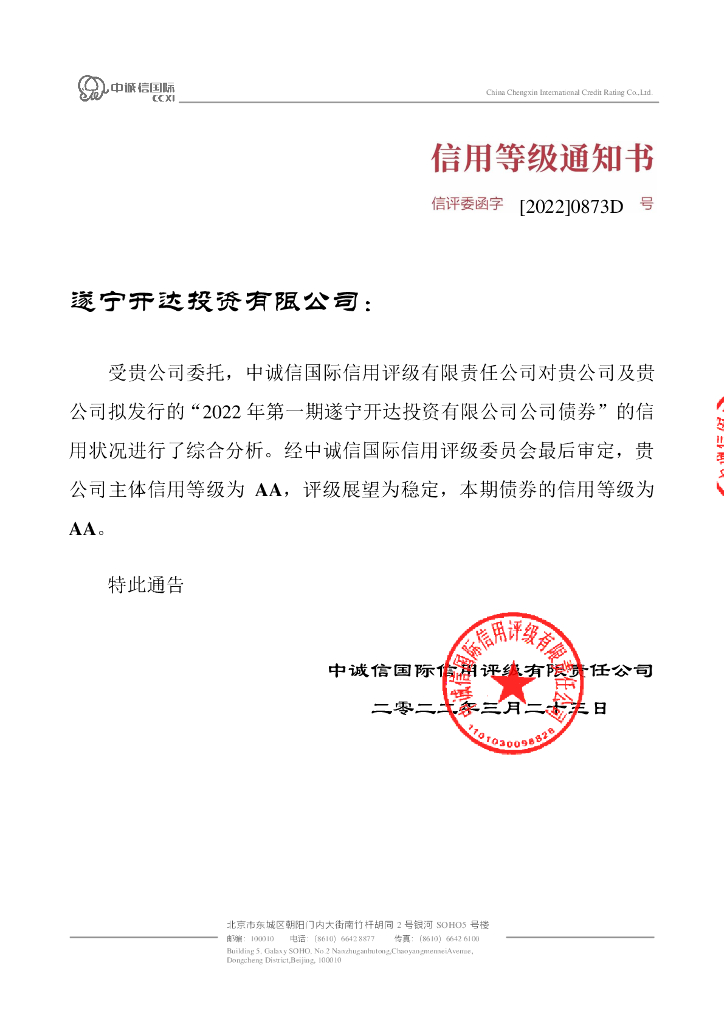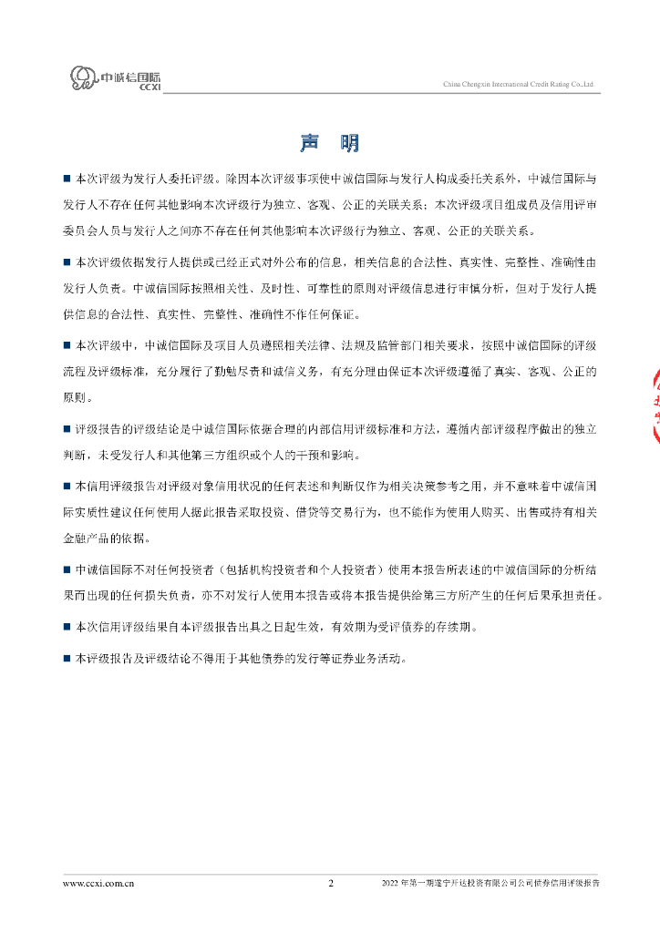 中诚信:2022年第一期遂宁开达投资有限公司公司债券信用评级报告.pdf