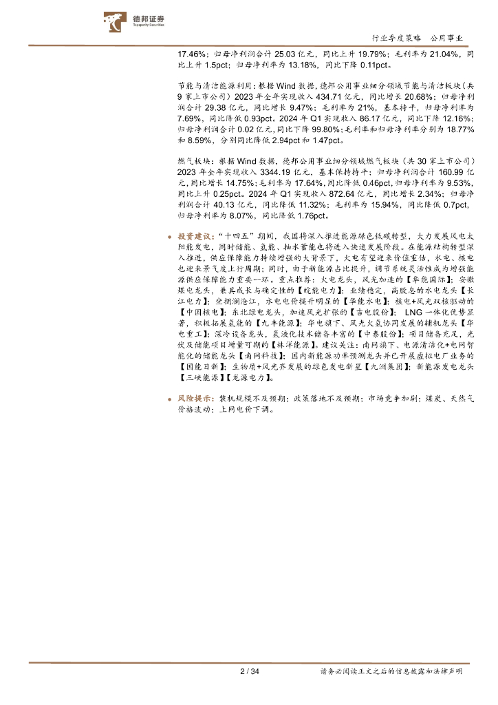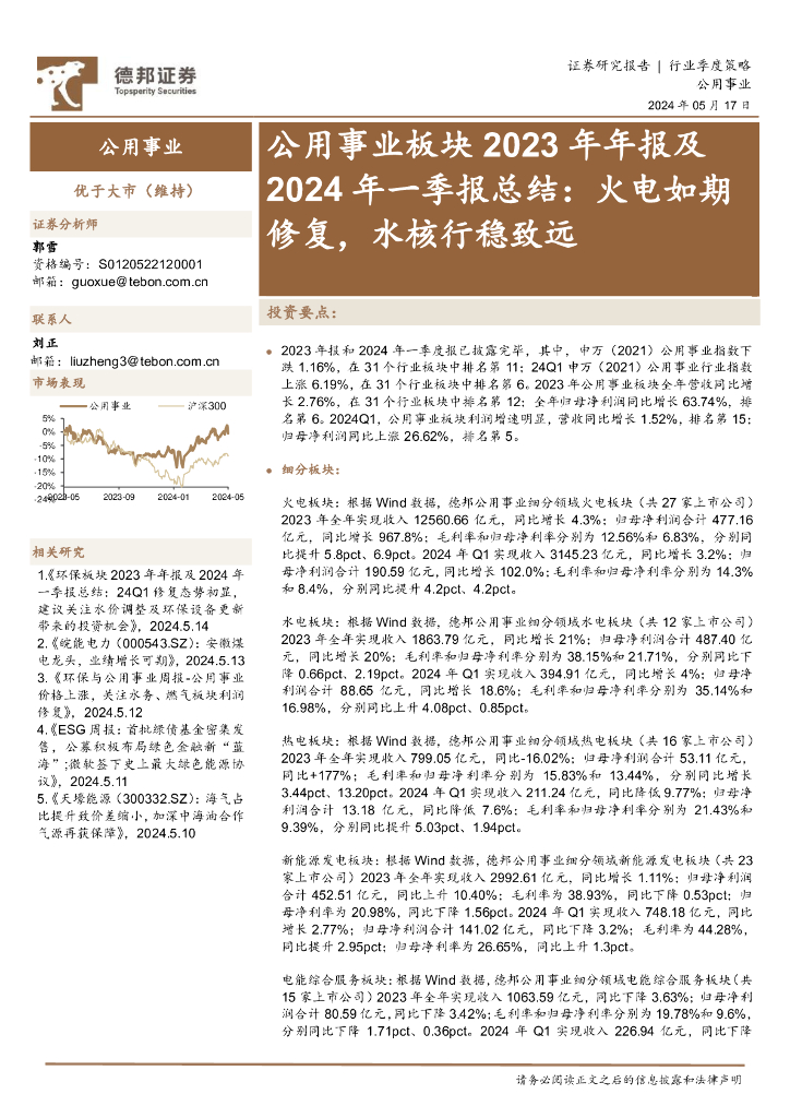 德邦证券:公用事业板块2023年年报及2024年一季报总结:火电如期修复,水核行稳致远.pdf