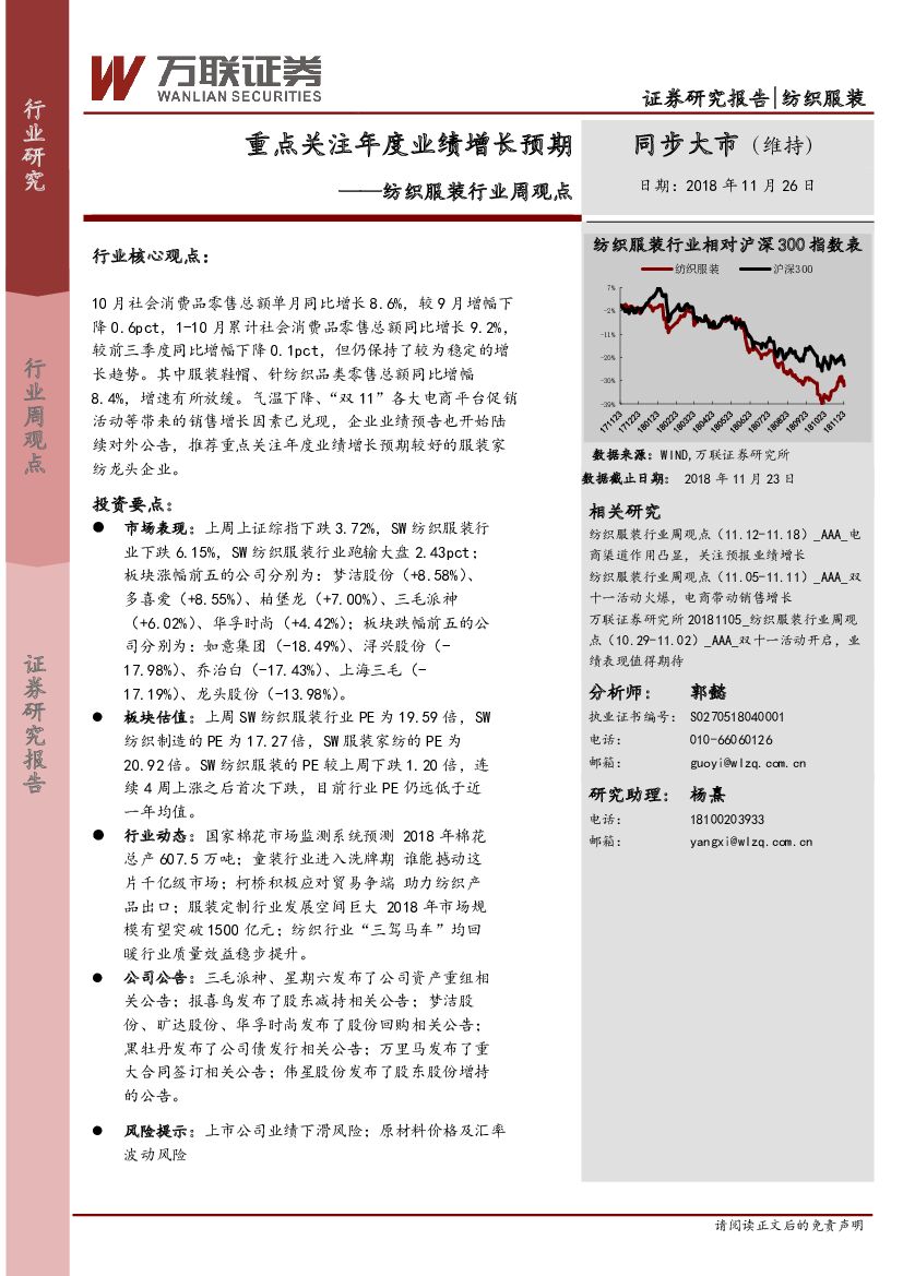 万联证券:纺织服装行业周观点:重点关注年度业绩增长预期.pdf