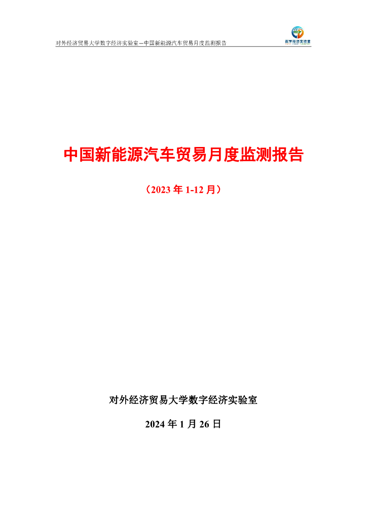 对外经济贸易大学:新能源汽车贸易月度监测报告(2023年1-12月).pdf