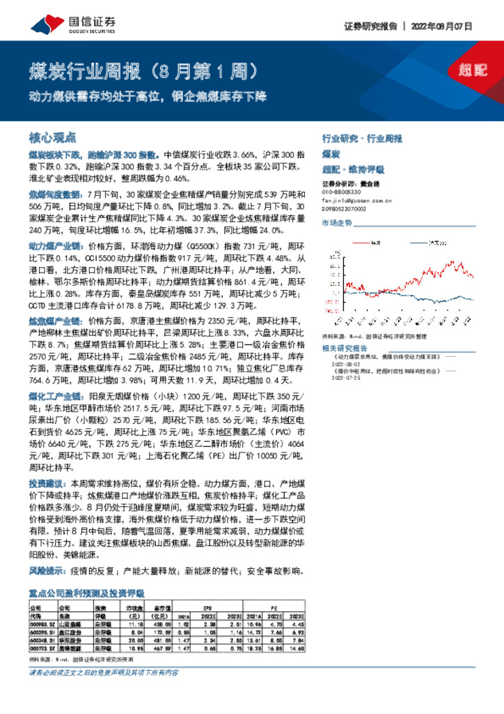 国信证券:煤炭行业周报(8月第1周):动力煤供需存均处于高位,钢企焦煤库存下降.pdf