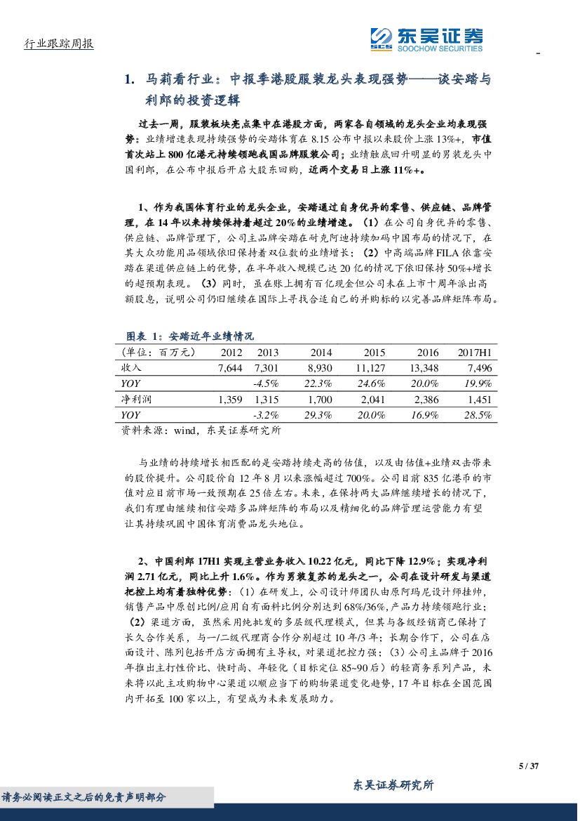 东吴证券:纺织服装周观点:中报季港股服装龙头表现强势——谈安踏与利郎的投资逻辑.pdf