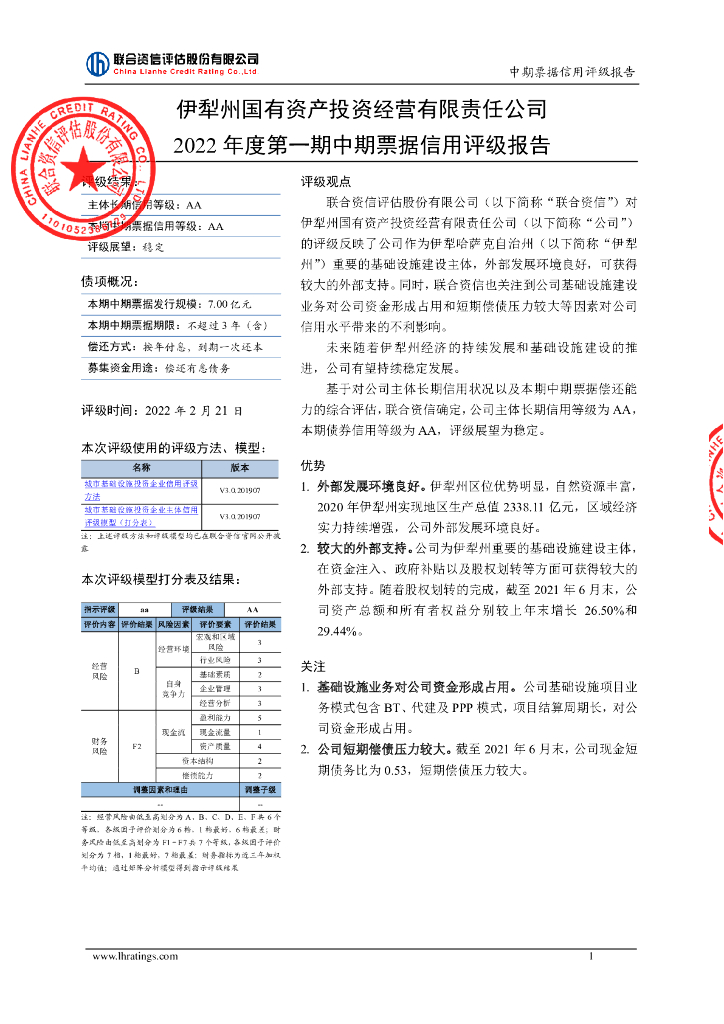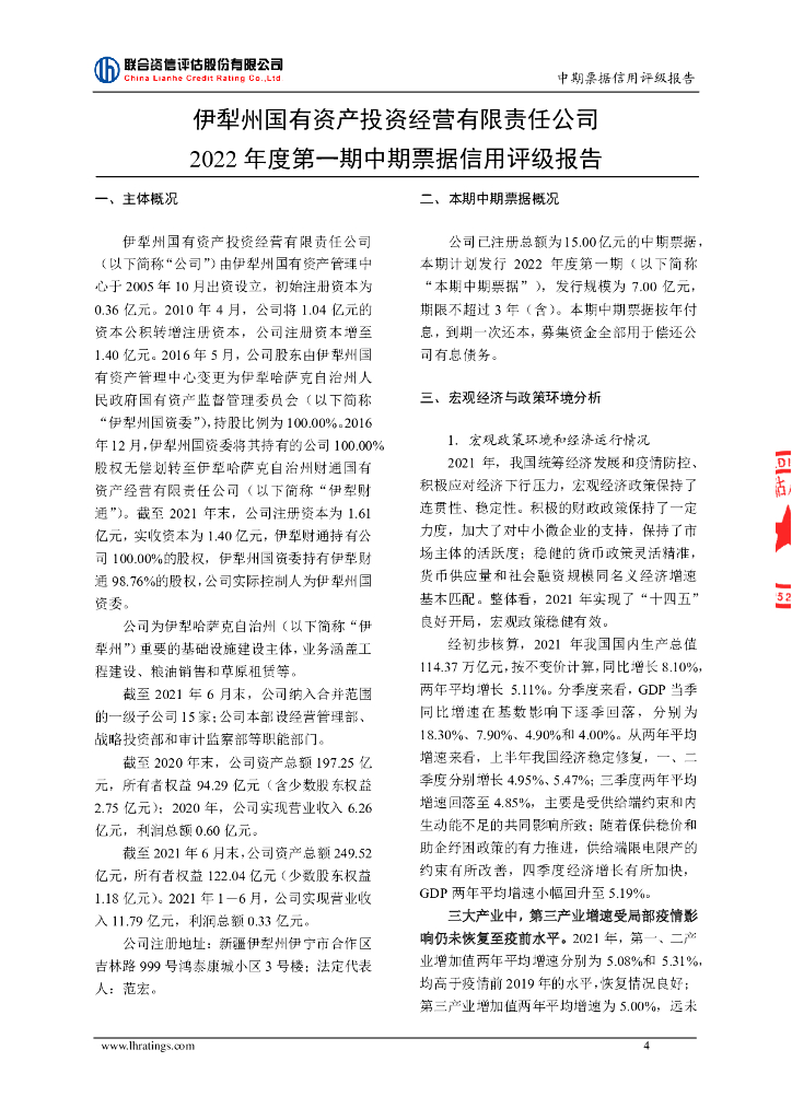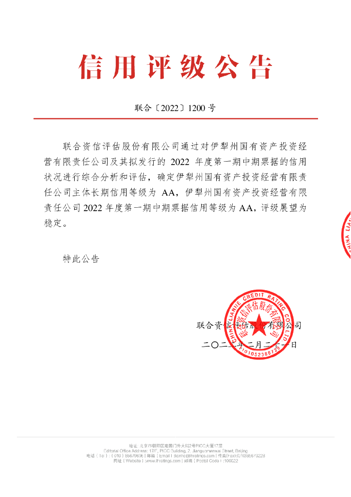 联合资信:伊犁州国有资产投资经营有限责任公司2022年度第一期中期票据信用评级报告.pdf