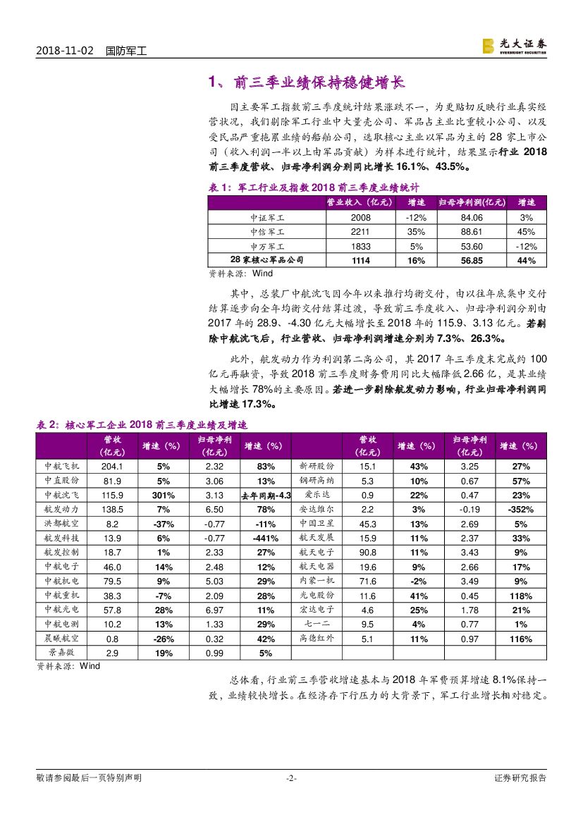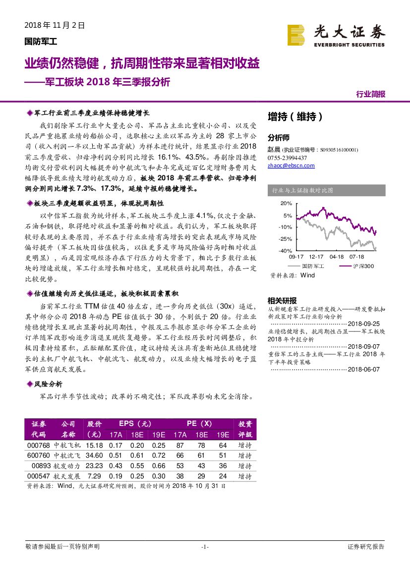 光大证券:军工板块2018年三季报分析:业绩仍然稳健,抗周期性带来显著相对收益.pdf