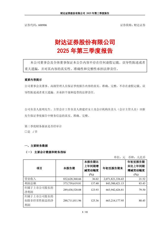 600906-财达证券:财达证券股份有限公司2025年第三季度报告.pdf