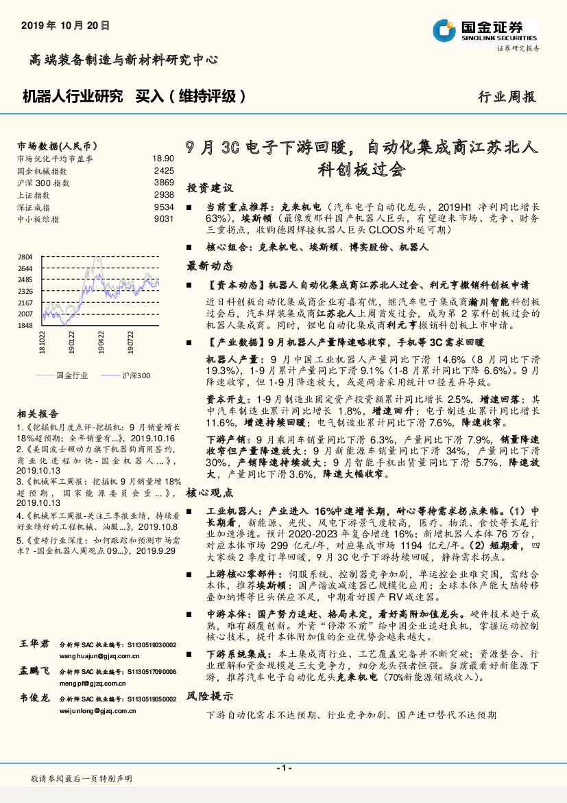 国金证券:机器人行业周报:9月3C电子下游回暖,自动化集成商江苏北人科创板过会.pdf