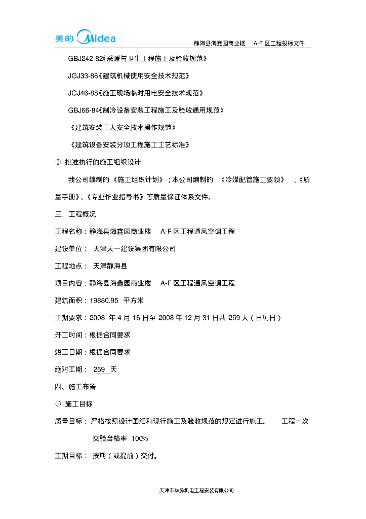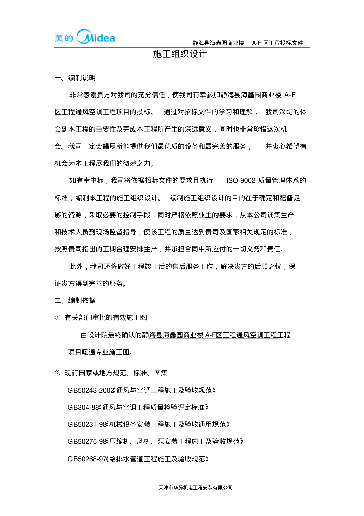 静海县海鑫园商业楼A-F区通风空调多联机施工组织设计(69页).pdf