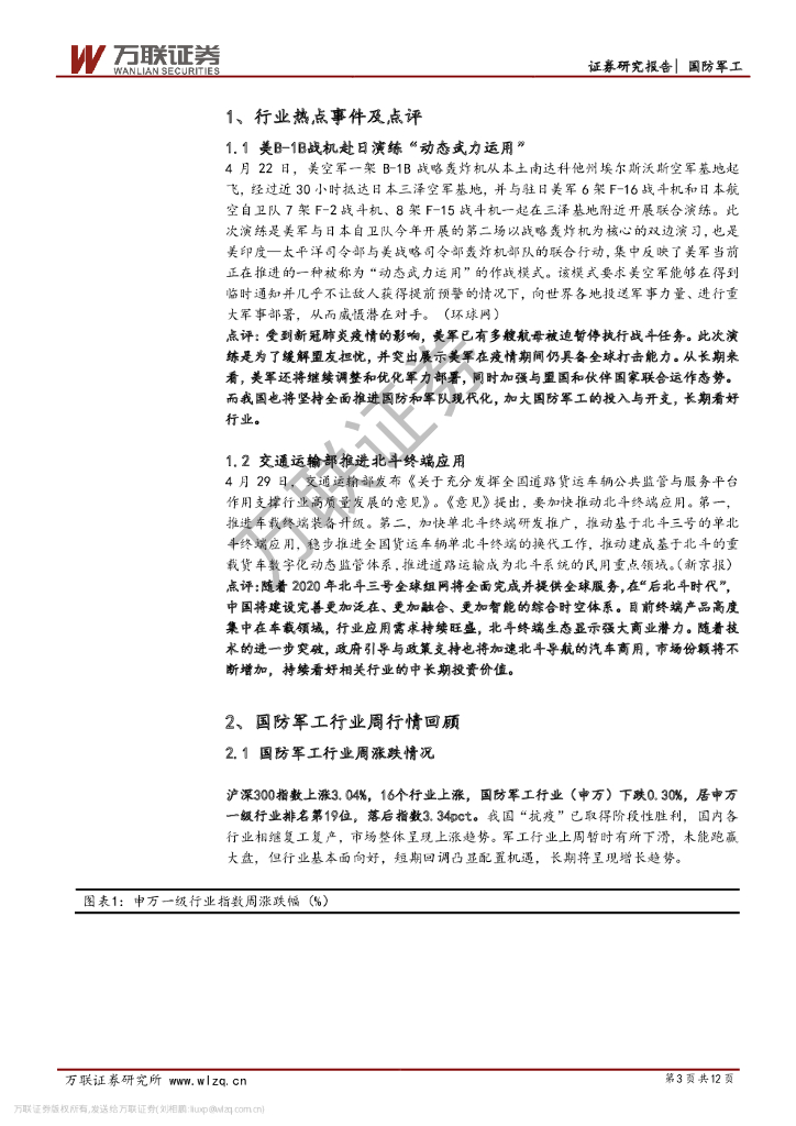 万联证券:国防军工行业周观点:行业关注度持续回调,下游主流标的凸显配置机遇.pdf