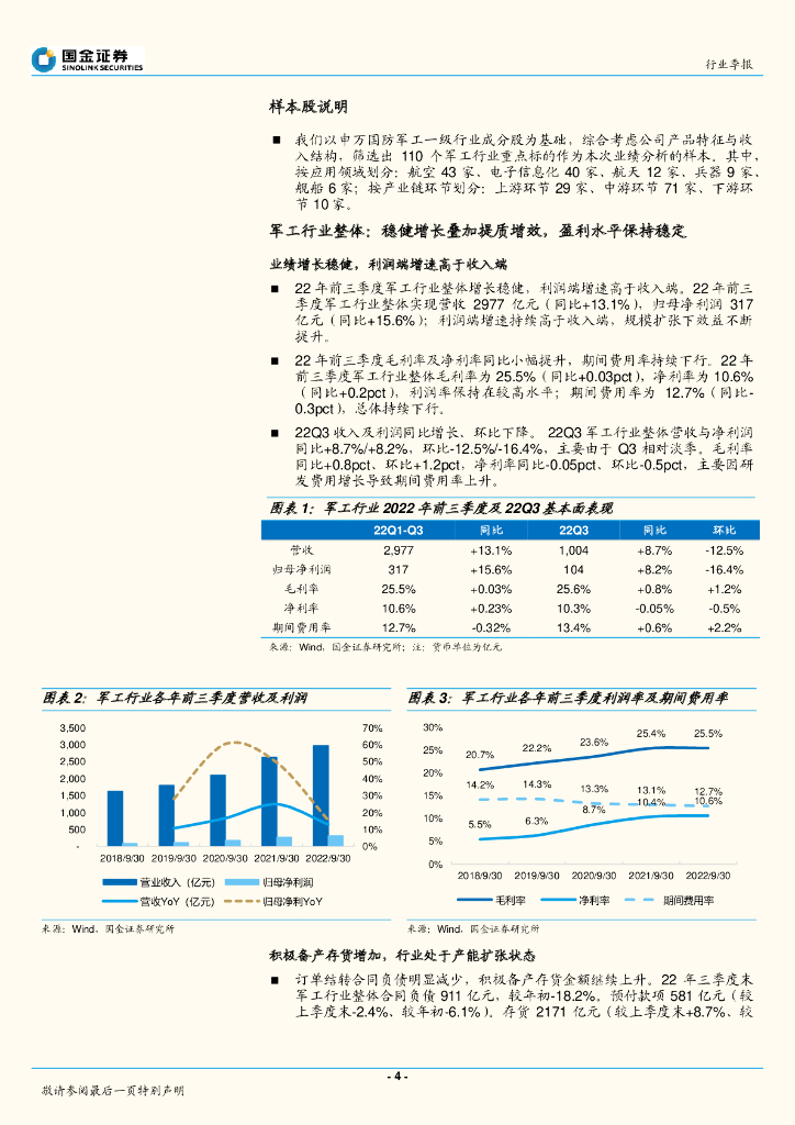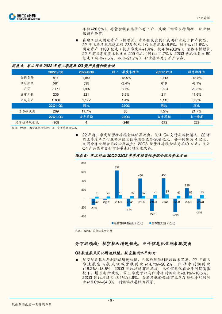 国金证券:军工行业2022年三季报总结:行业稳健增长,扩产蓄力充分.pdf