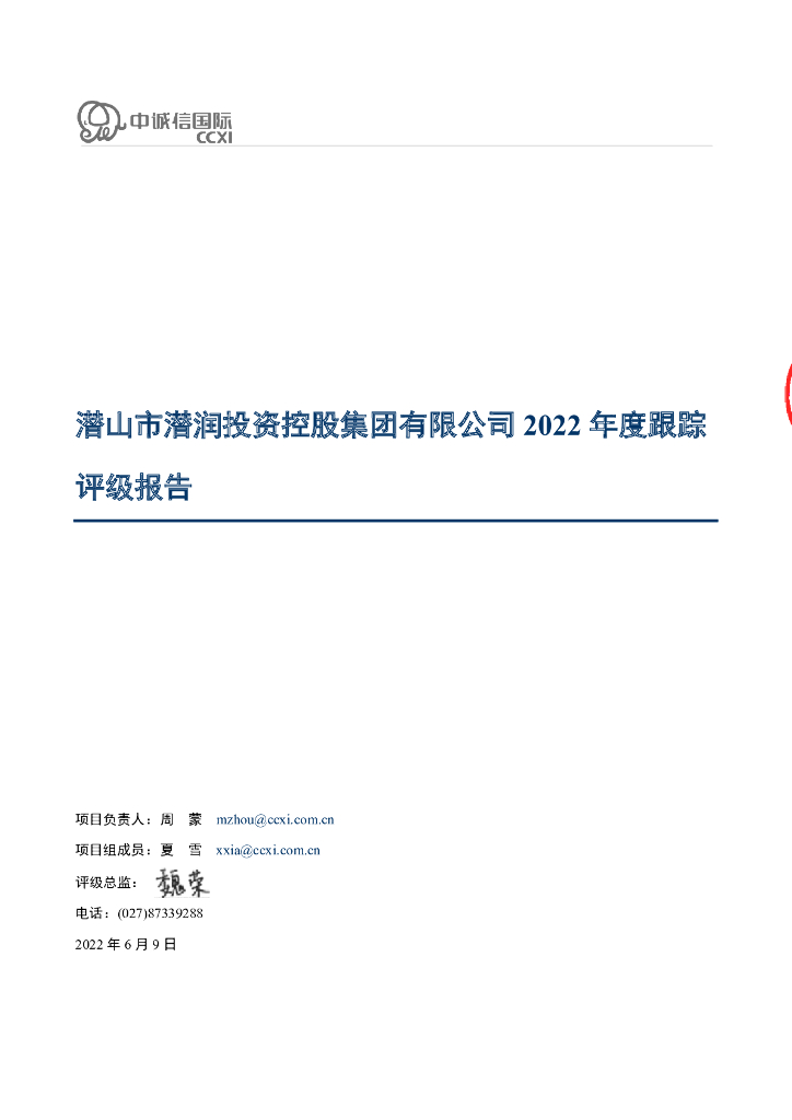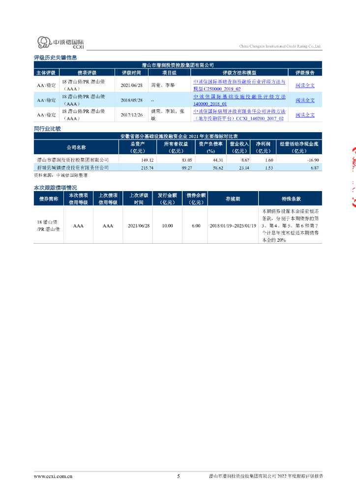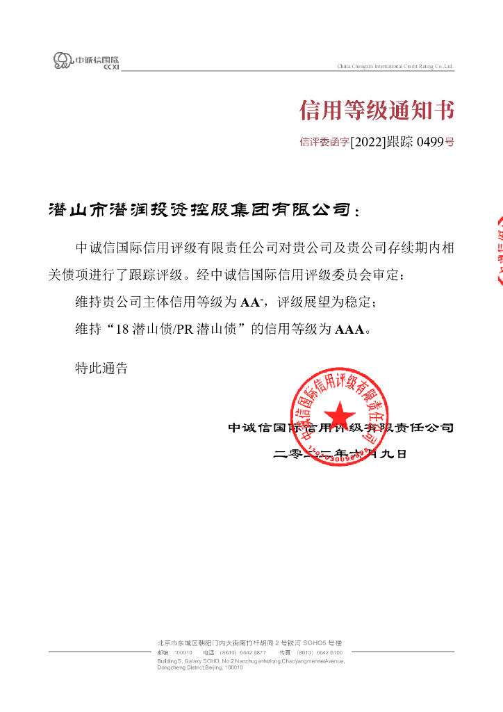 中诚信:潜山市潜润投资控股集团有限公司2022年度跟踪评级报告.pdf