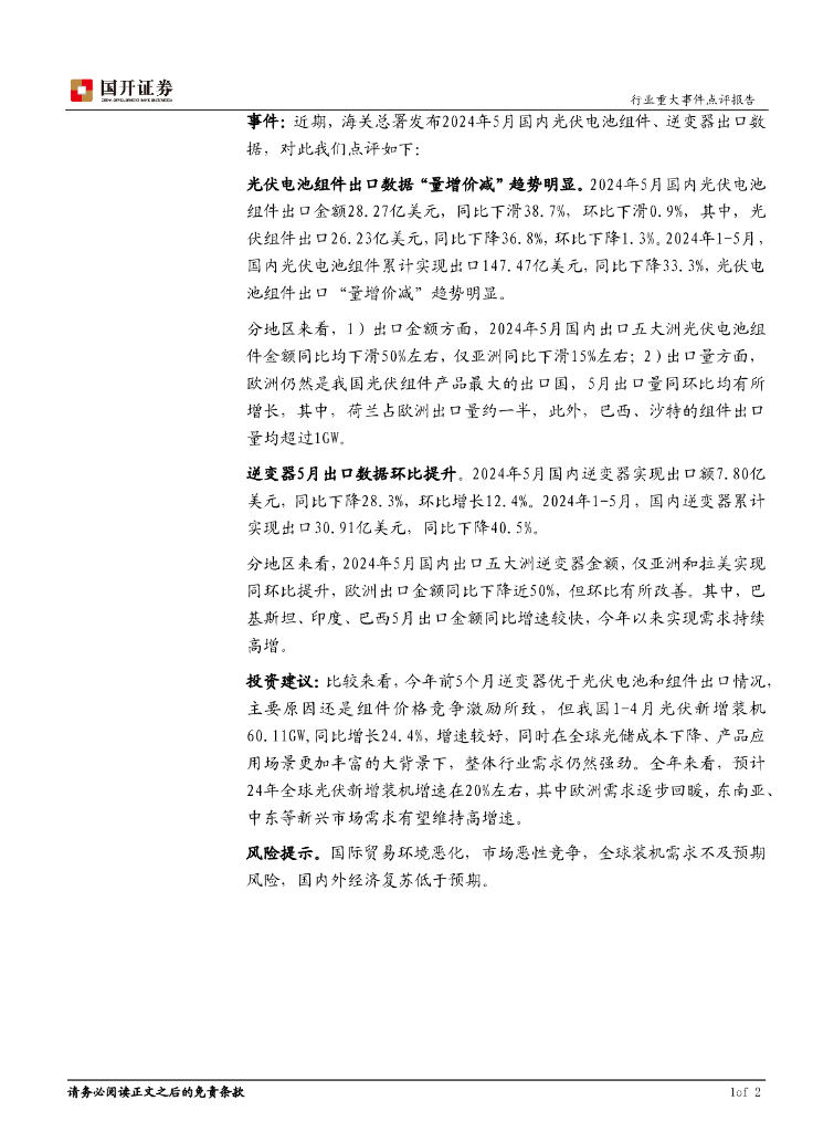 国开证券:5月国内光伏出口继续量增价减,逆变器持续改善.pdf