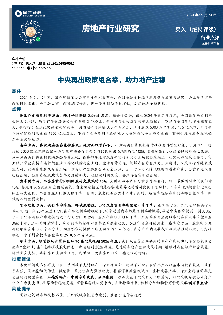 国金证券:房地产行业研究:中央再出政策组合拳,助力地产企稳.pdf