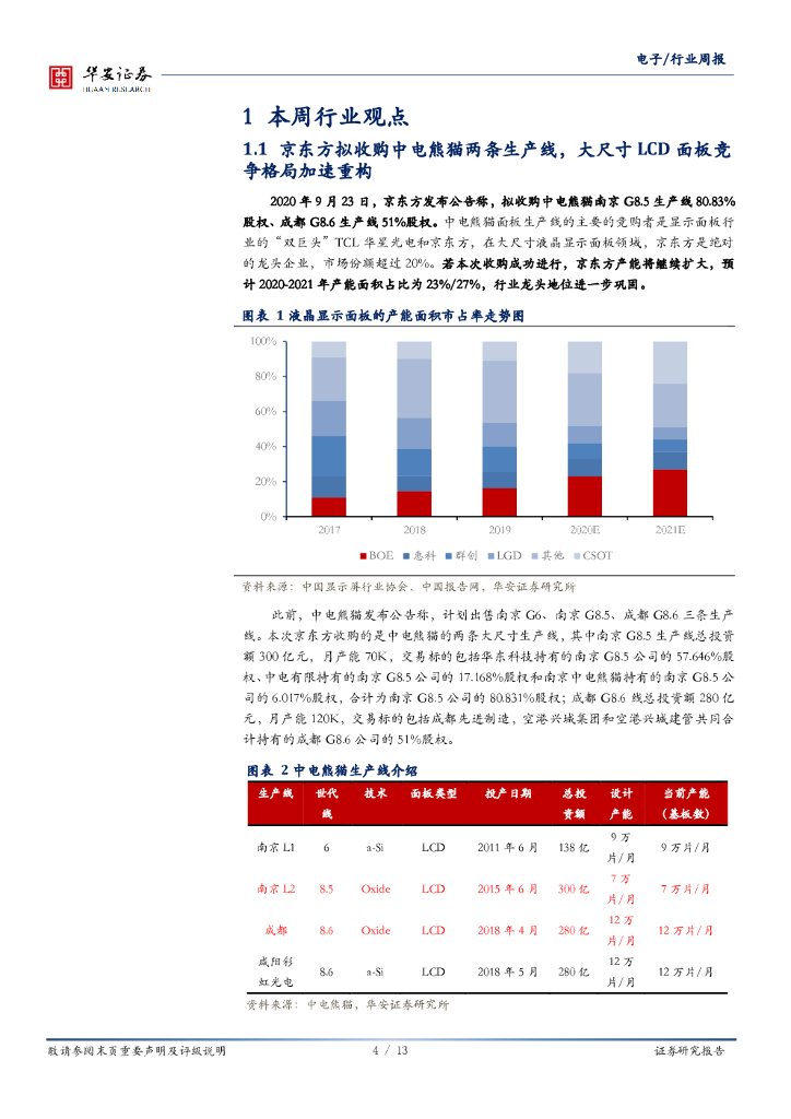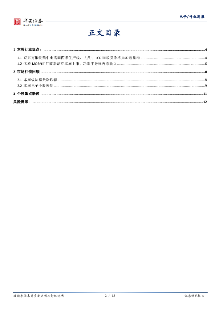 华安证券:电子行业周报:面板产业加速整合集中度持续提升,功率半导体再添新兵.pdf