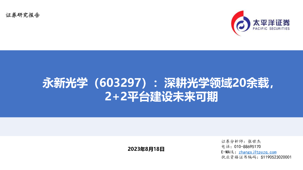 太平洋证券:永新光学(603297)-深耕光学领域20余载,2+2平台建设未来可期.pdf