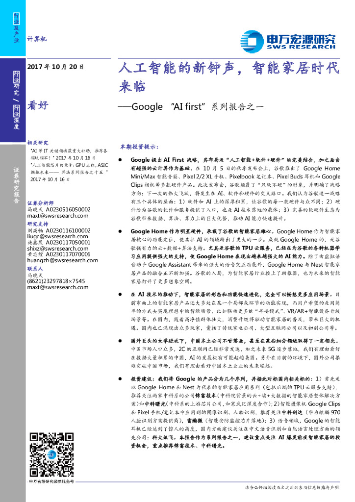 申万宏源:人工智能的新钟声,智能家居时代来临.pdf