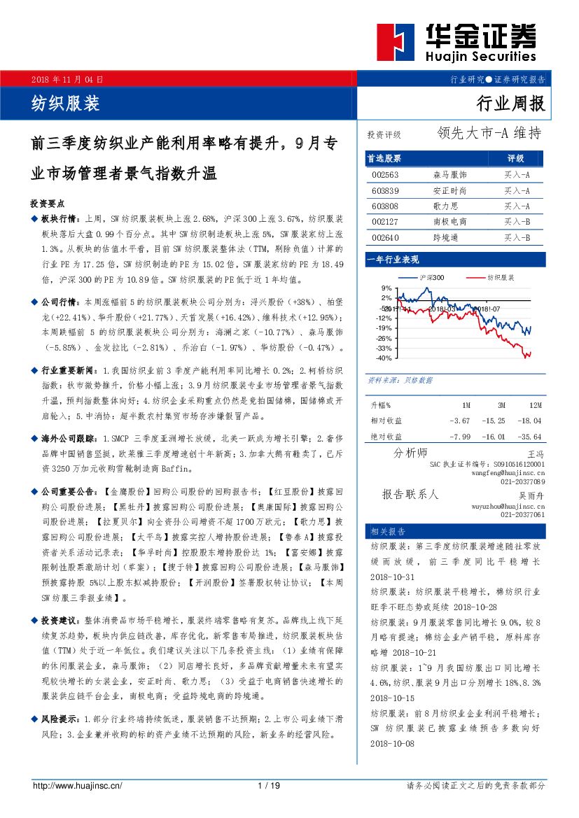 华金证券:纺织服装行业周报:前三季度纺织业产能利用率略有提升,9月专业市场管理者景气指数升温.pdf