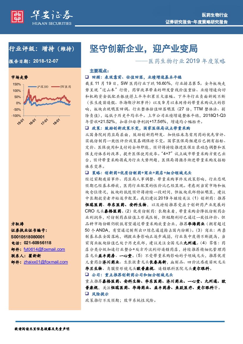 华安证券:医药生物行业2019年度策:坚守创新企业,迎产业变局.pdf