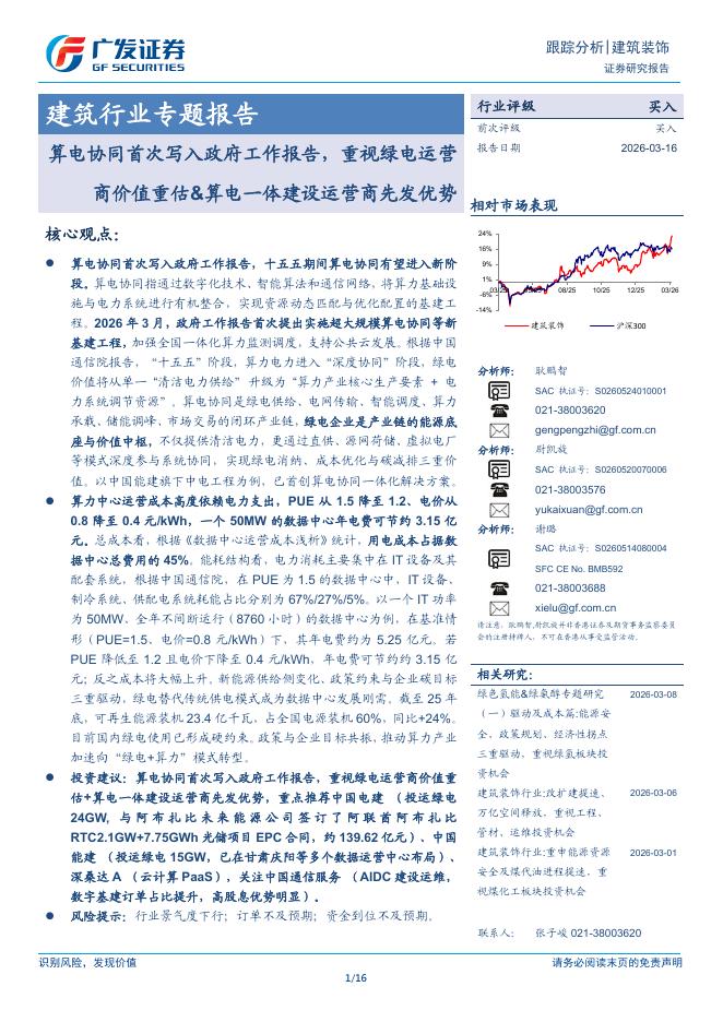 广发证券:建筑行业专题报告:算电协同首次写入政府工作报告,重视绿电运营-商价值重估&算电一体建设运营商先发优势.pdf