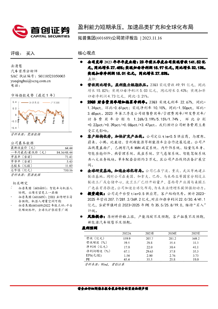 首创证券:拓普集团(601689)-公司简评报告:盈利能力短期承压,加速品类扩充和全球化布局.pdf