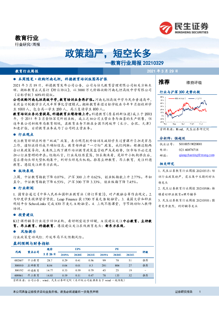 民生证券:教育行业周报:政策趋严,短空长多.pdf