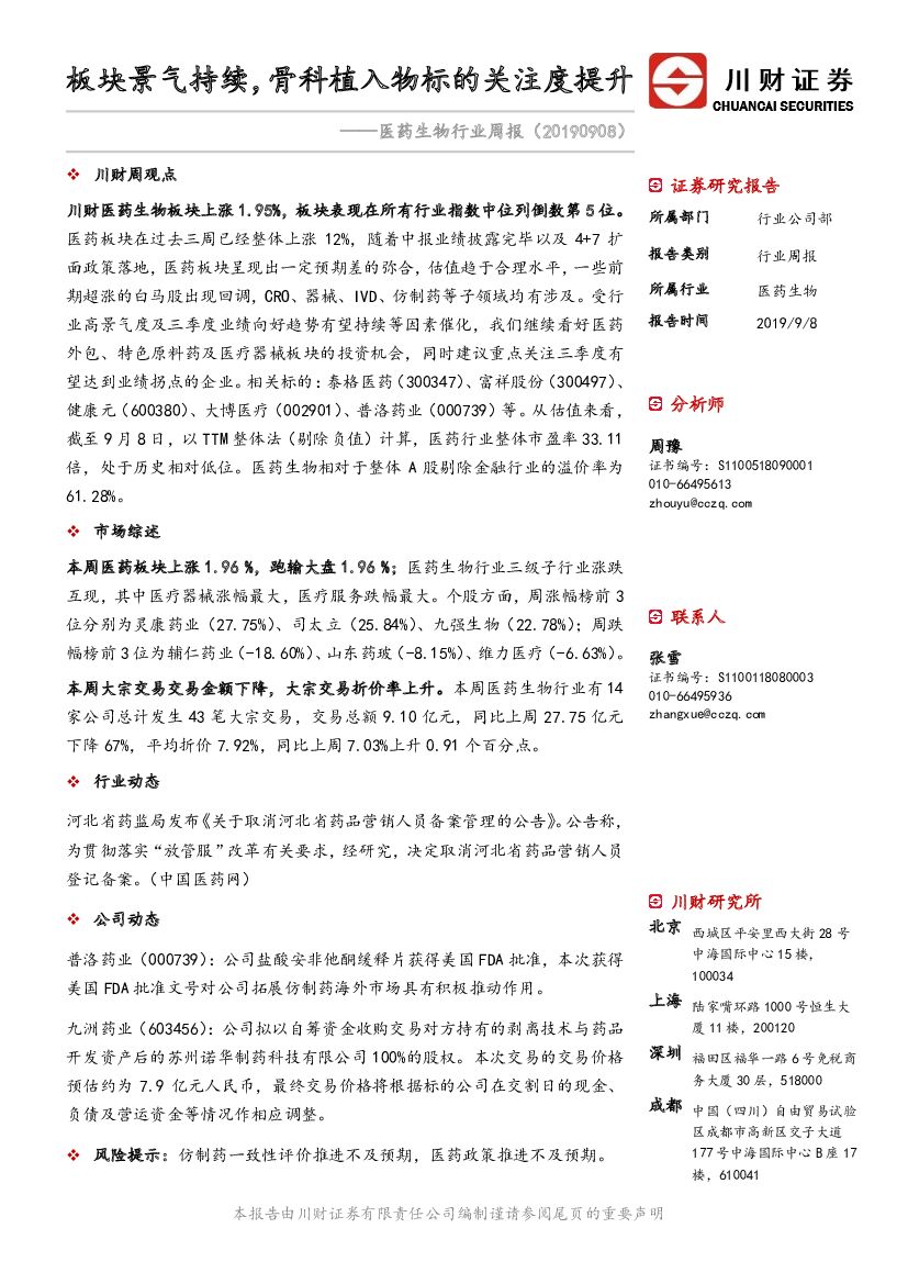 川财证券:医药生物行业周报:板块景气持续,骨科植入物标的关注度提升.pdf