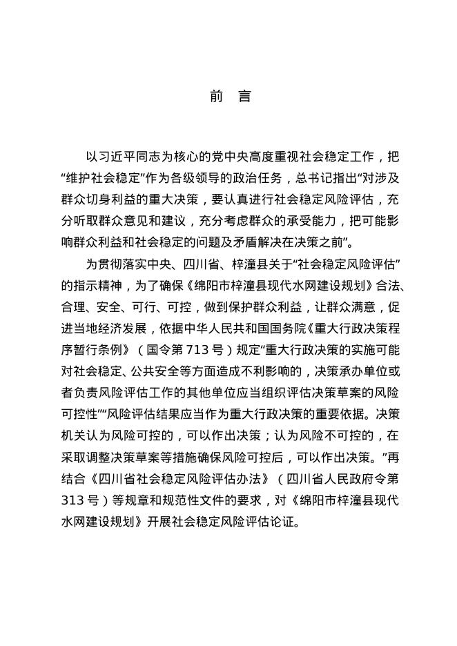 梓潼县现代水网建设规划社会稳定风险评估报告.doc