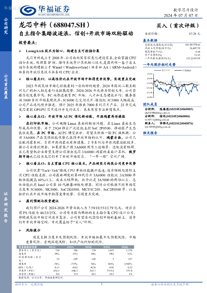 华福证券:龙芯中科(688047)-自主指令集踏波逐浪,信创+开放市场双轮驱动.pdf