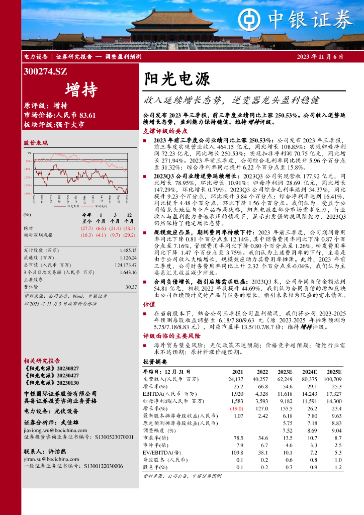 中银证券:阳光电源(300274)-收入延续增长态势,逆变器龙头盈利稳健.pdf