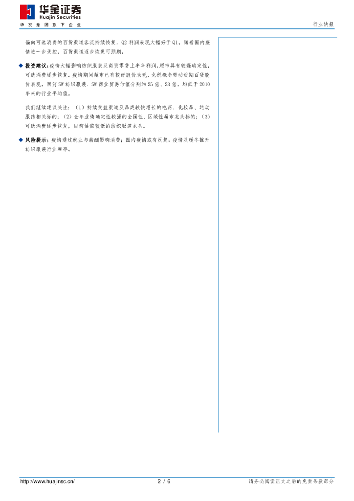 华金证券:纺织服装行业快报:纺服零售中报预告点评:关注可选消费复苏及超市确定性.pdf