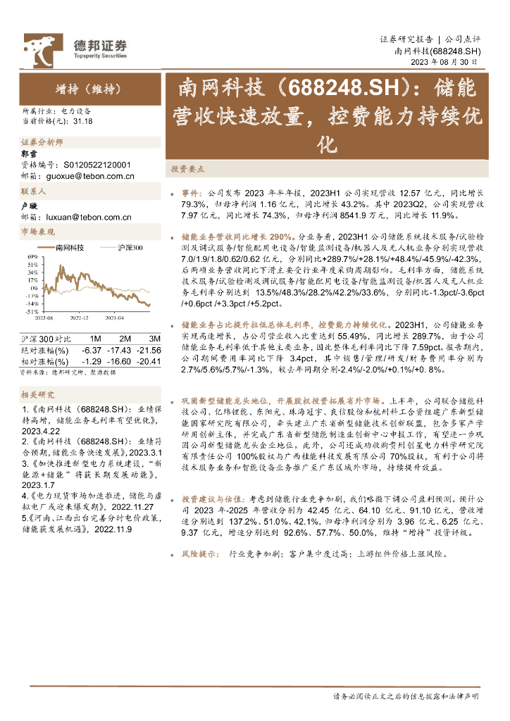 德邦证券:南网科技(688248)-储能营收快速放量,控费能力持续优化.pdf