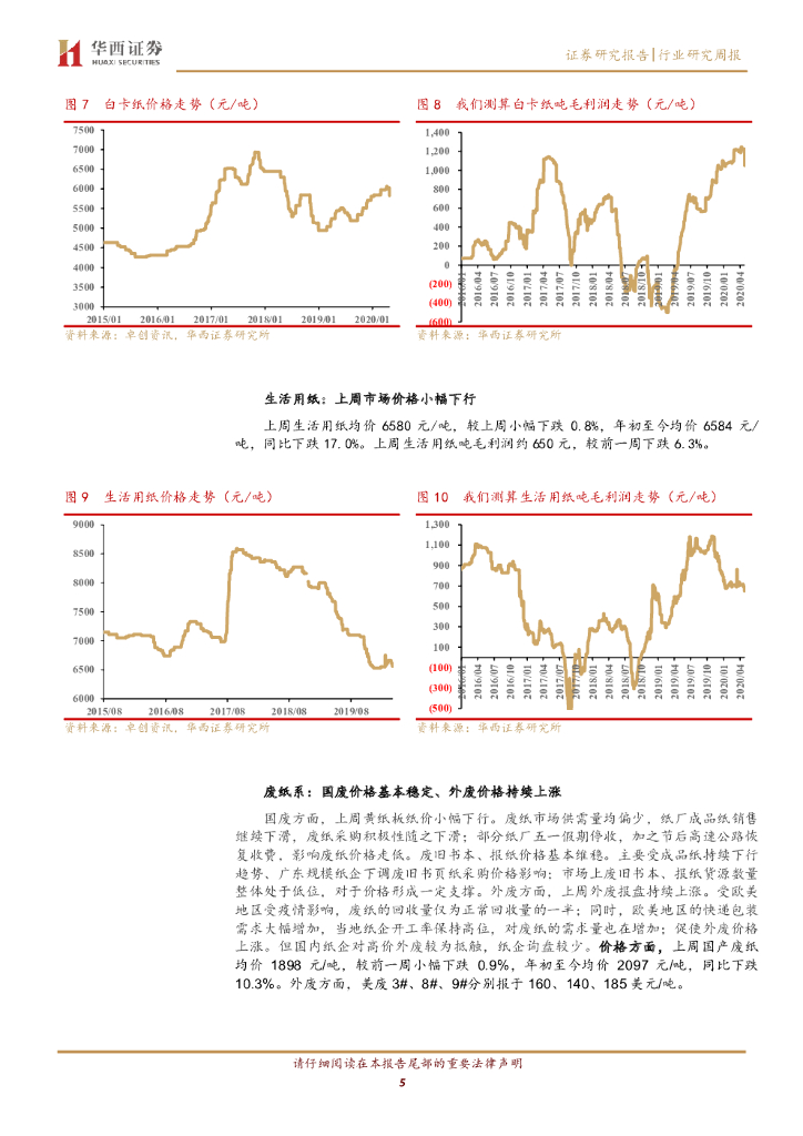 华西证券:造纸行业数据跟踪报告:文化纸和白卡纸价格阶段性调整,生活用纸景气延续.pdf
