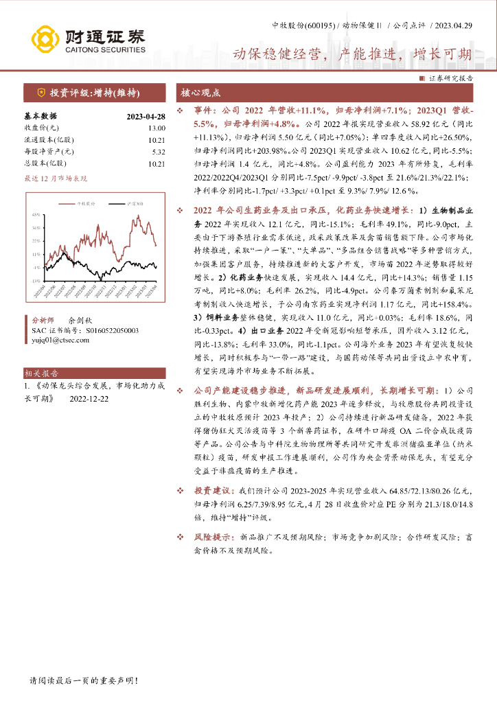 财通证券:中牧股份(600195)-动保稳健经营,产能推进,增长可期.pdf