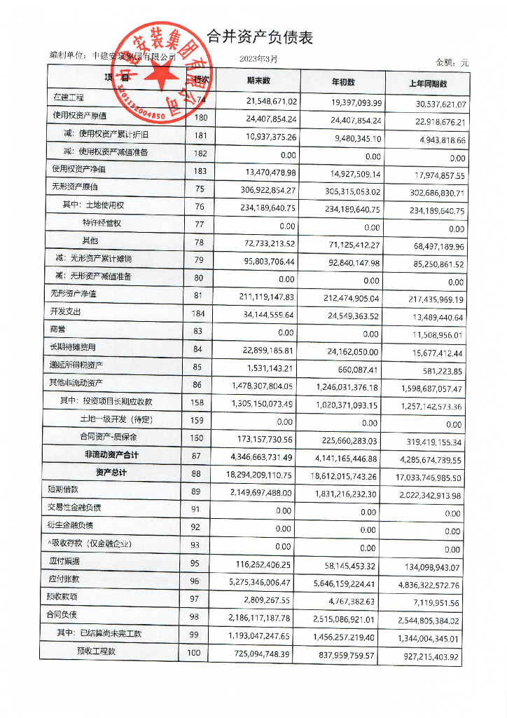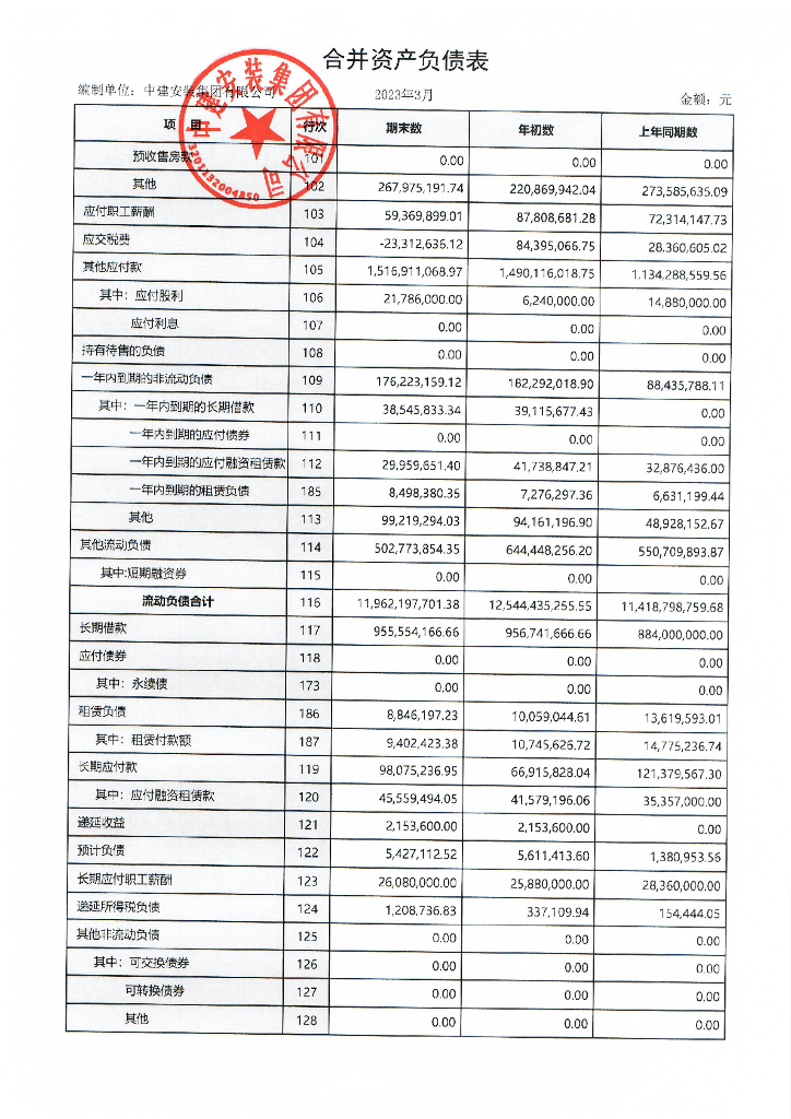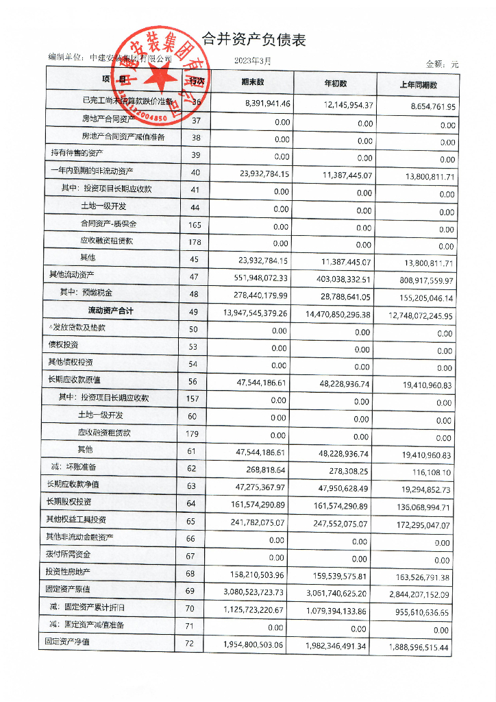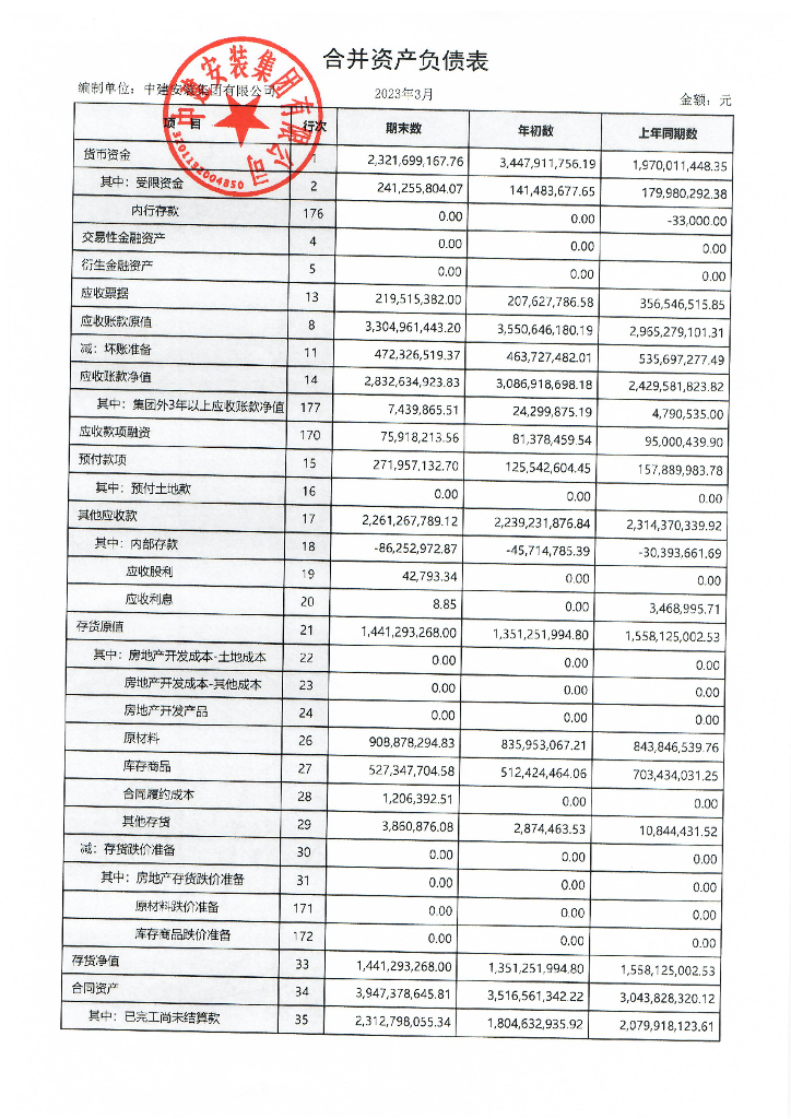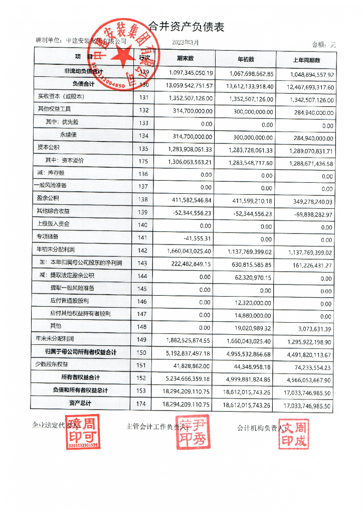 中建安装集团有限公司2023年一季度合并及母公司财务报表.pdf