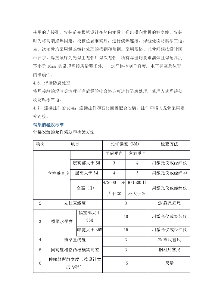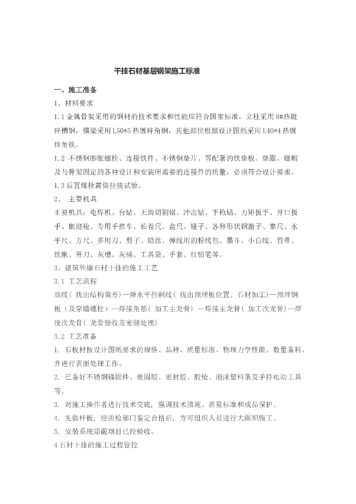 干挂石材基层钢架施工标准.doc