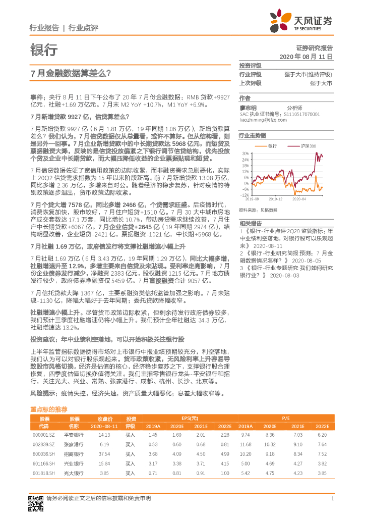 天风证券:银行行业点评:7月金融数据算差么?.pdf