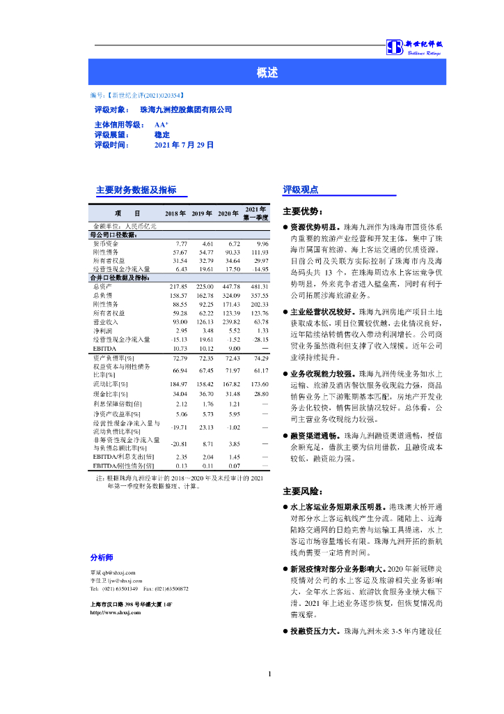 新世纪:珠海九洲控股集团有限公司主体信用评级报告.pdf