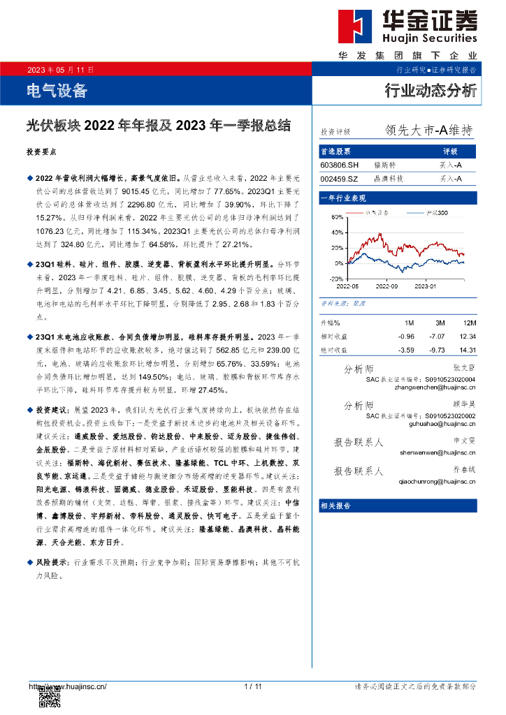 华金证券:光伏板块2022年年报及2023年一季报总结.pdf