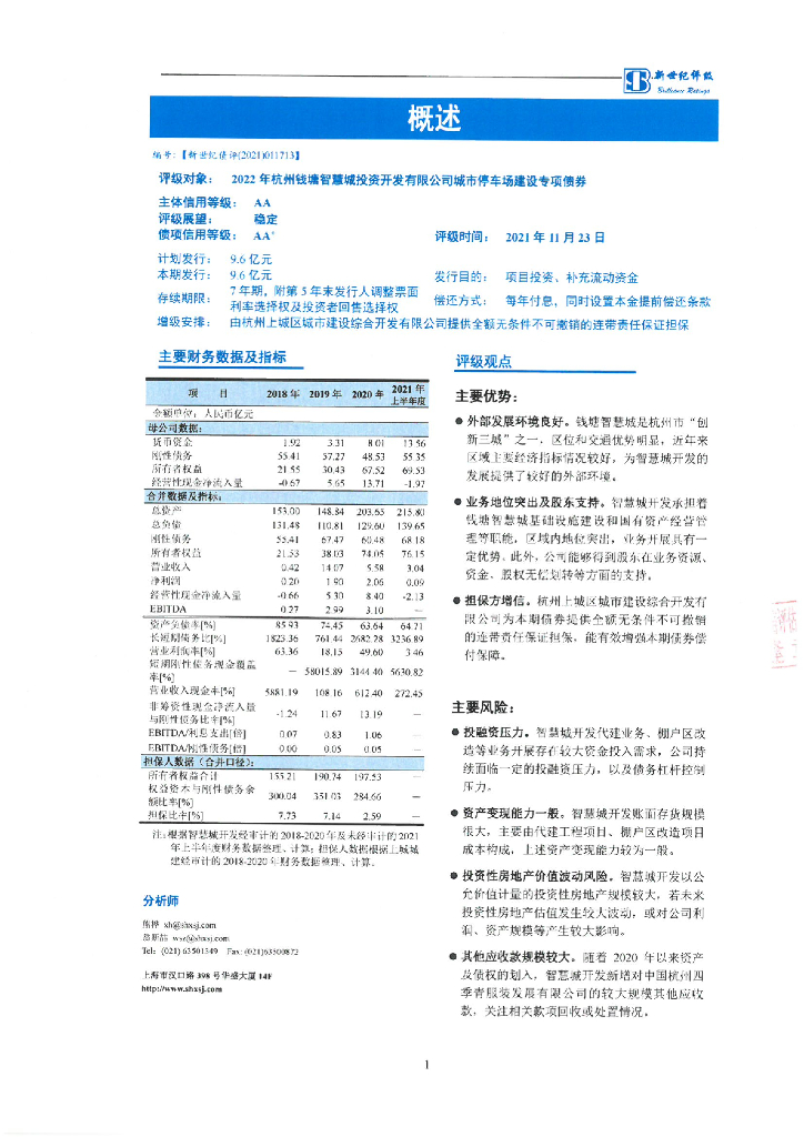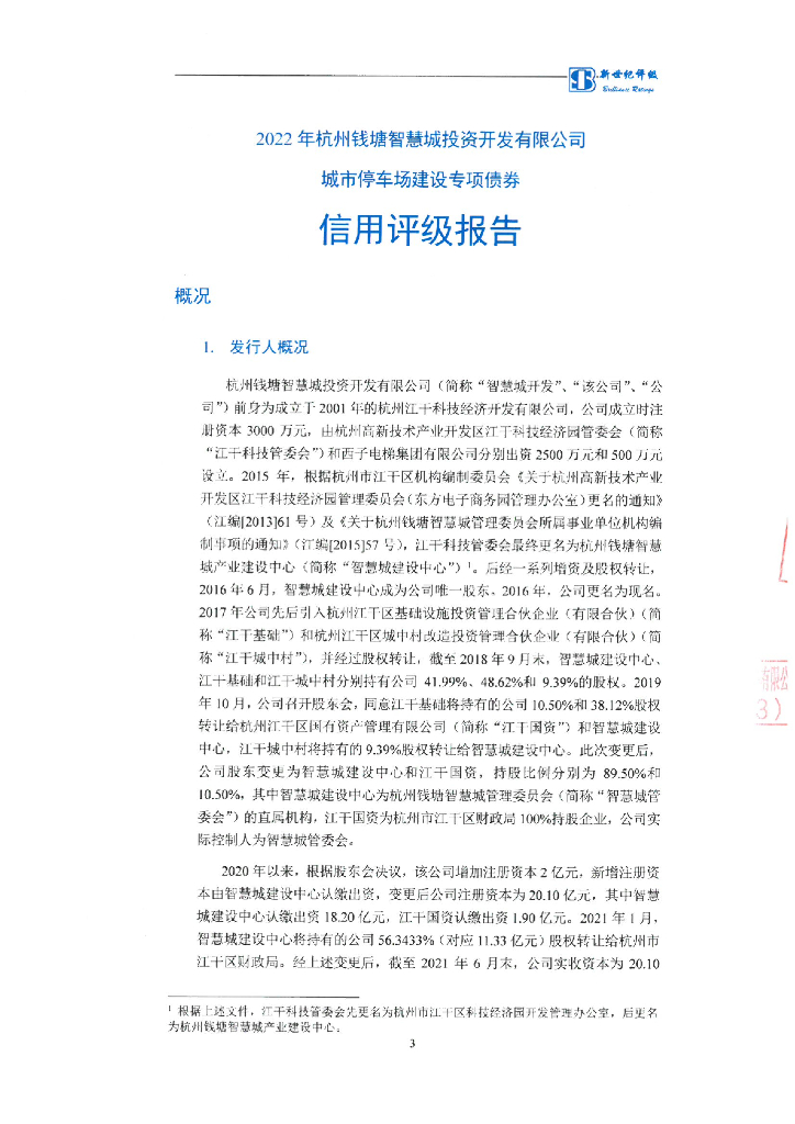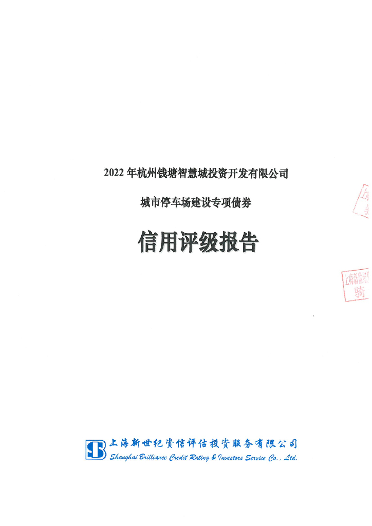 新世纪:2022年杭州钱塘智慧城投资开发有限公司城市停车场建设专项债券信用评级报告.pdf