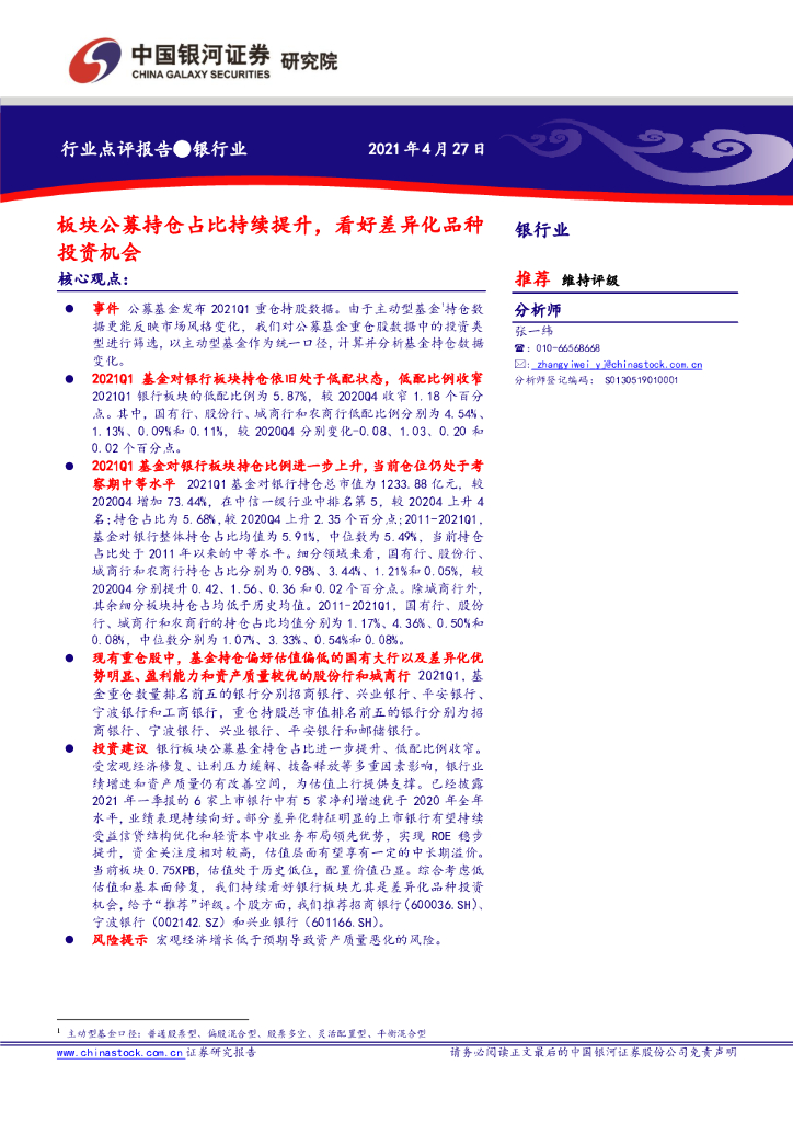 中国银河:银行业:板块公募持仓占比持续提升,看好差异化品种投资机会.pdf