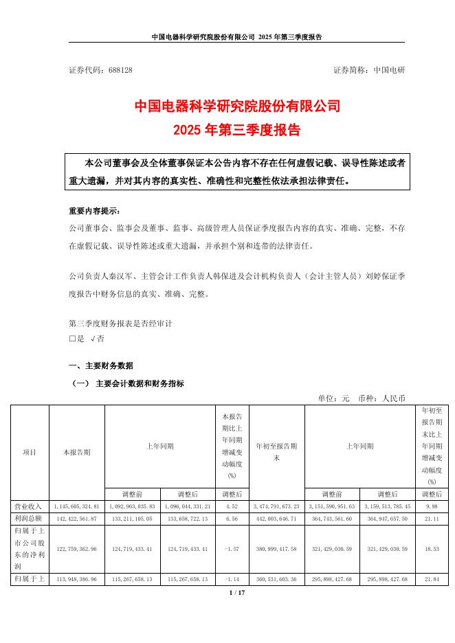 688128-中国电研:中国电研2025年第三季度报告.pdf